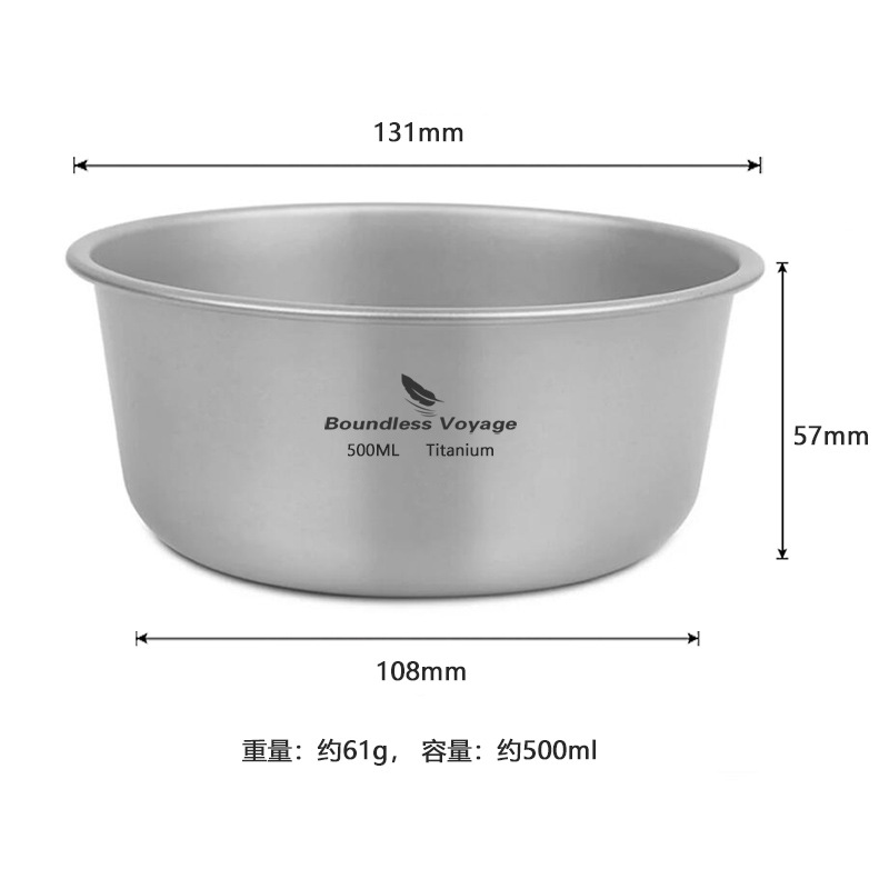 Biwei 단층 티타늄 그릇 야외 캠핑 순수 티타늄 그릇 접시 식기 쌓을 수있는 오픈 파이어 가열 500ml스토어 가기