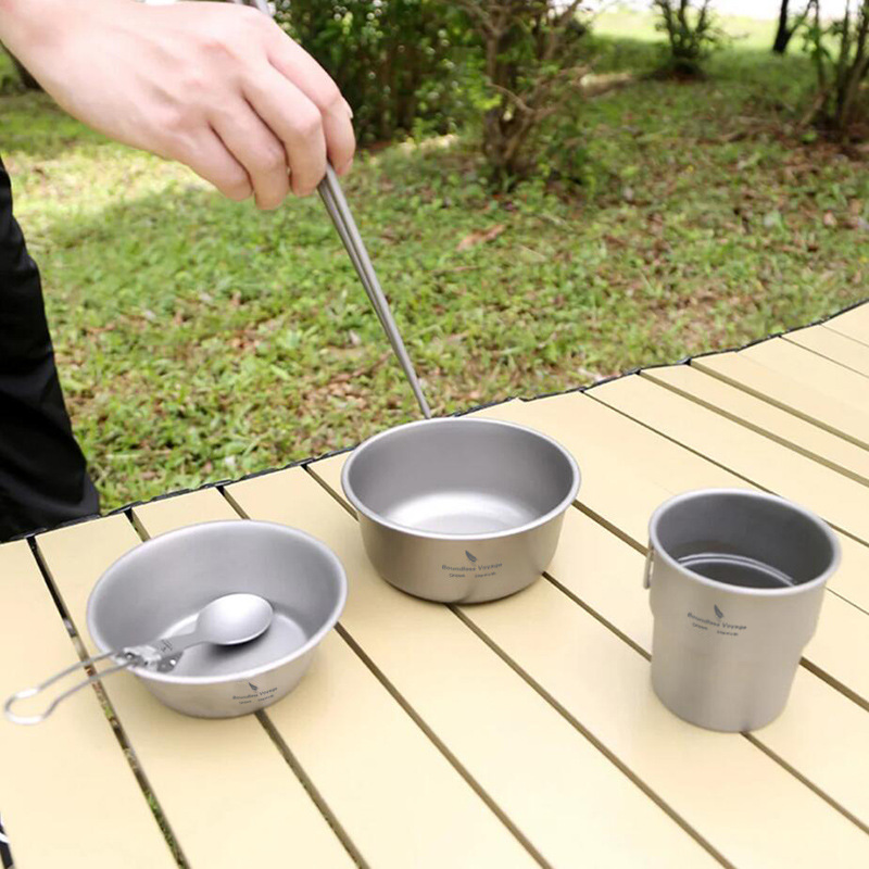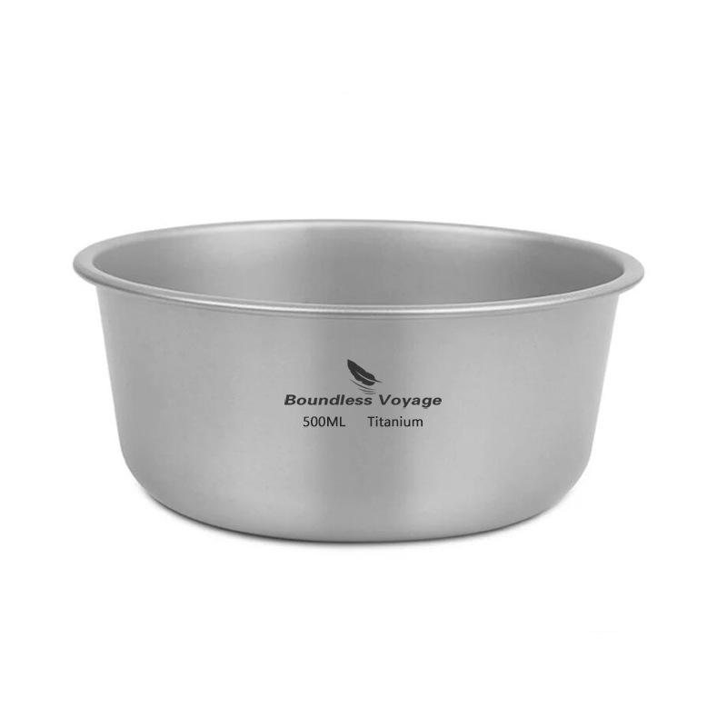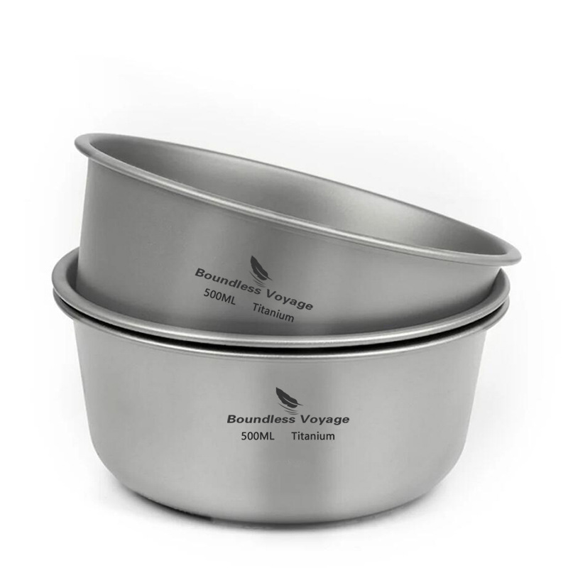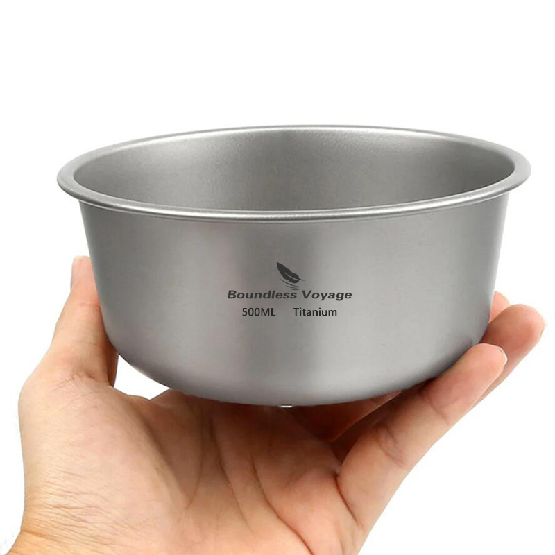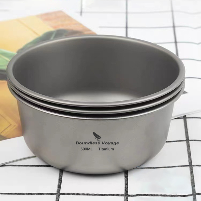 Biwei 단층 티타늄 그릇 야외 캠핑 순수 티타늄 그릇 접시 식기 쌓을 수있는 오픈 파이어 가열 500ml