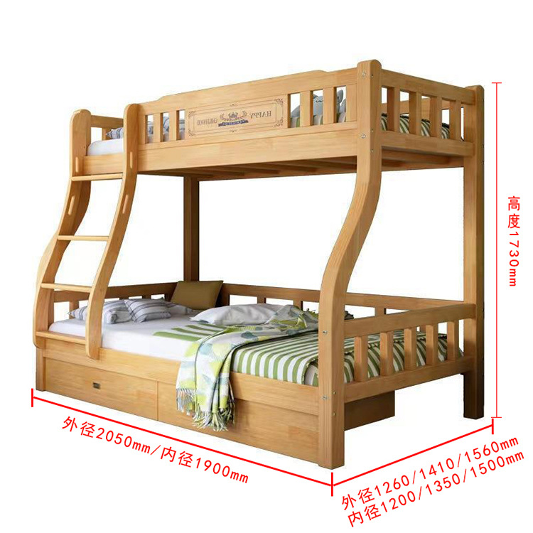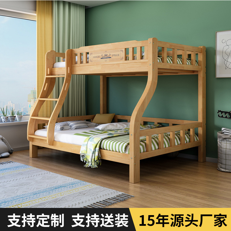 단단한 나무 이층 침대 이층 침대 다기능 어린이 침대 작은 아파트 높고 낮은 침대 어린이 벙크 더블 나무 침대