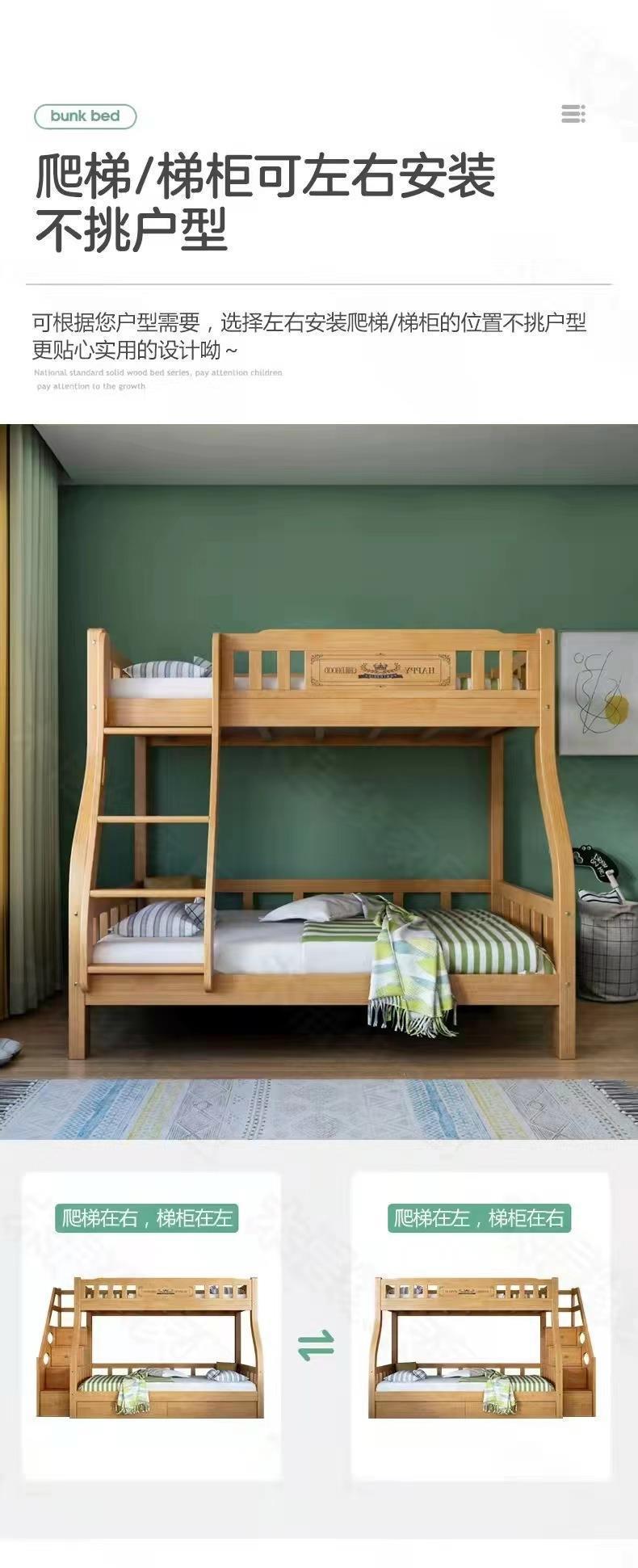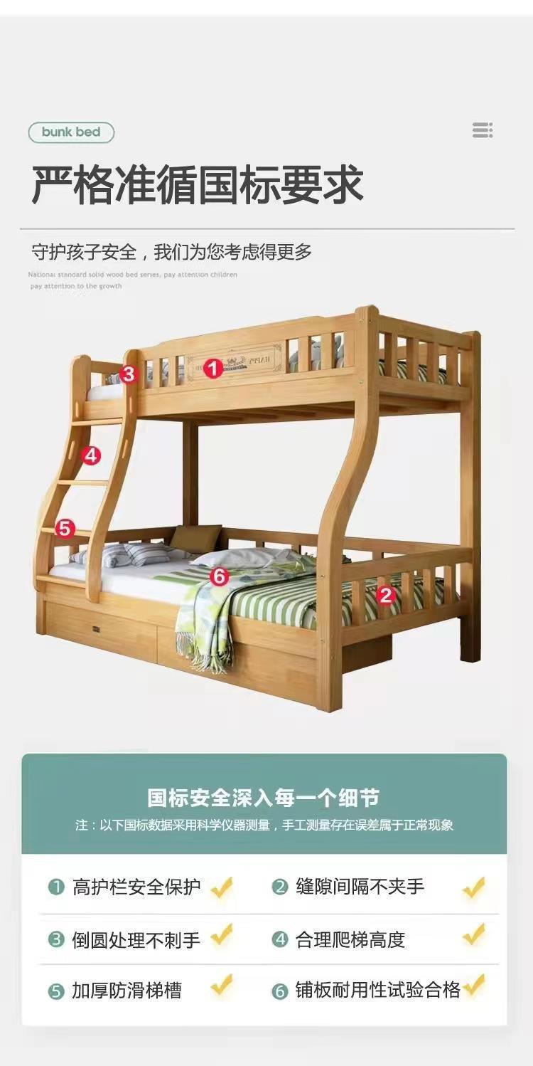 단단한 나무 이층 침대 이층 침대 다기능 어린이 침대 작은 아파트 높고 낮은 침대 어린이 벙크 더블 나무 침대스토어 가기