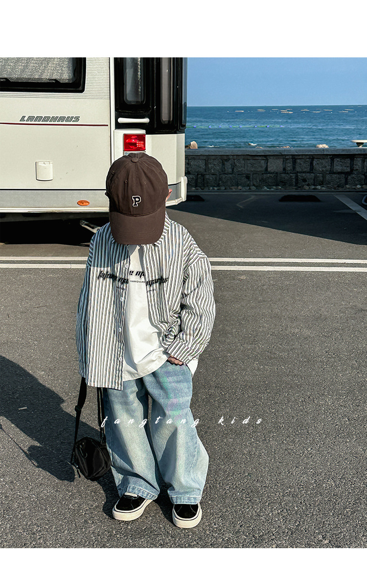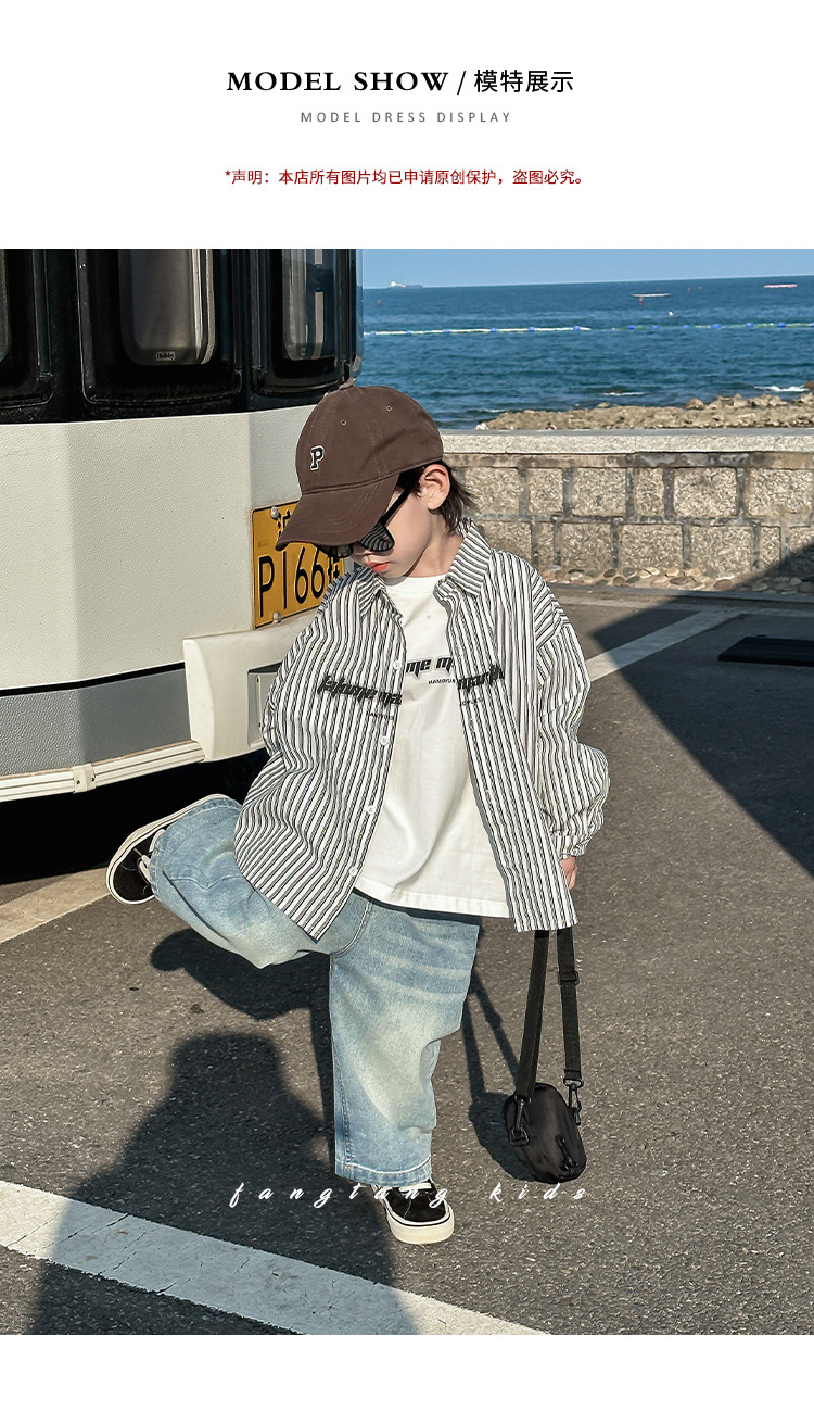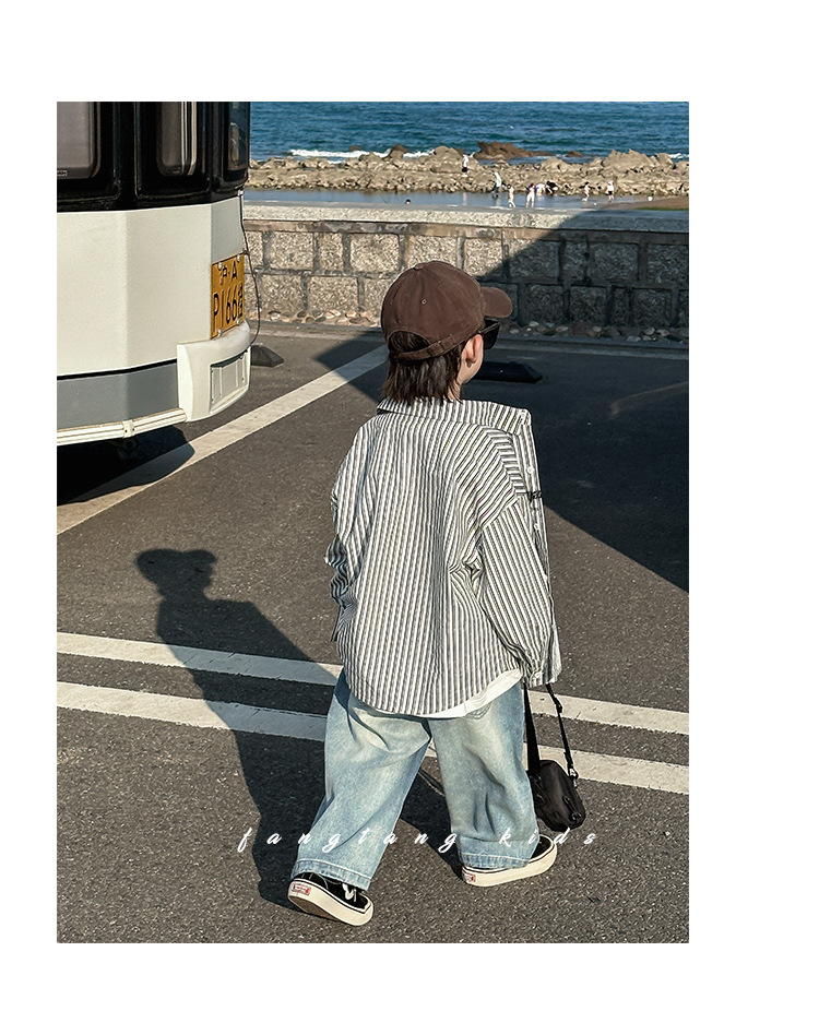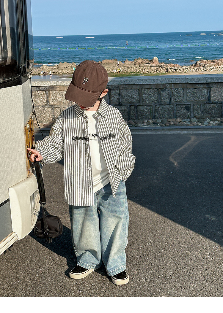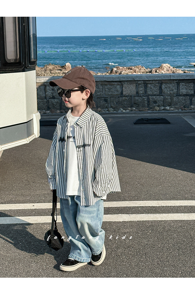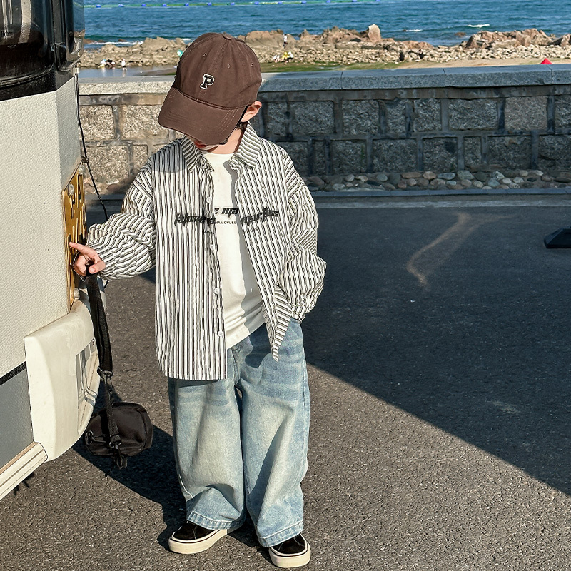 아동용 셔츠, 남아용 스트라이프 셔츠, 봄, 가을 의류, 2025 봄 신작, 어린 소년 스타일, 캐주얼, 트렌디하고 멋진 상의스토어 가기