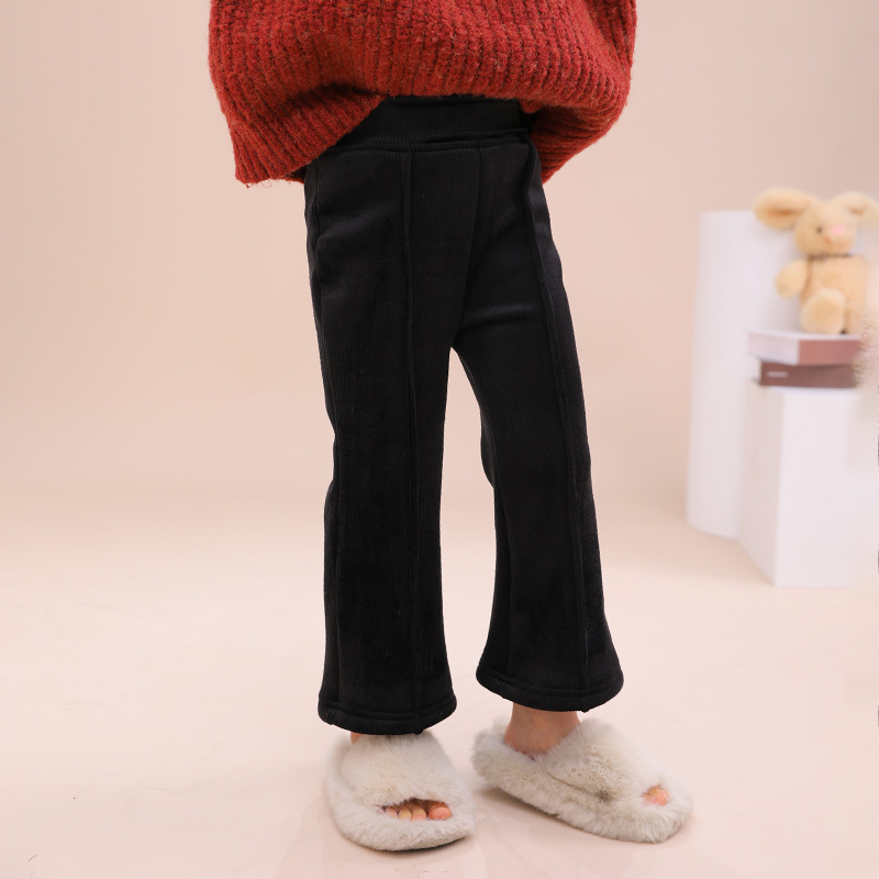 아동복 아기 소녀 검은 벨벳 두꺼운 나팔바지 2025 겨울 한국 스타일 소녀 다용도 두꺼운 슬림 바지
