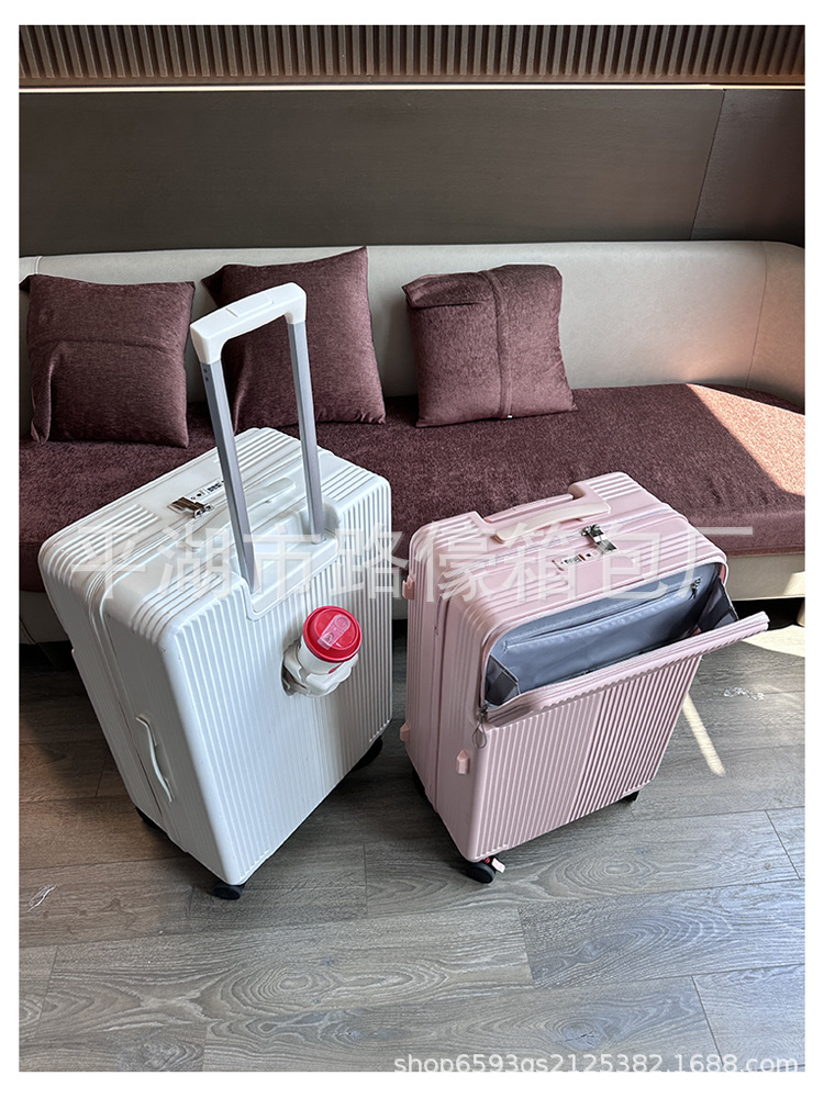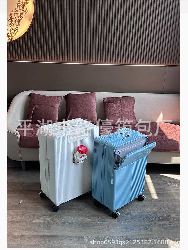 전면 개방 수하물 여성 20 인치 인터넷 유명인, 컵 홀더 여행 가방 남성 학생 탑승 가죽 케이스와 트롤리 케이스