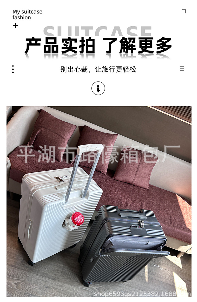 전면 개방 수하물 여성 20 인치 인터넷 유명인, 컵 홀더 여행 가방 남성 학생 탑승 가죽 케이스와 트롤리 케이스스토어 가기