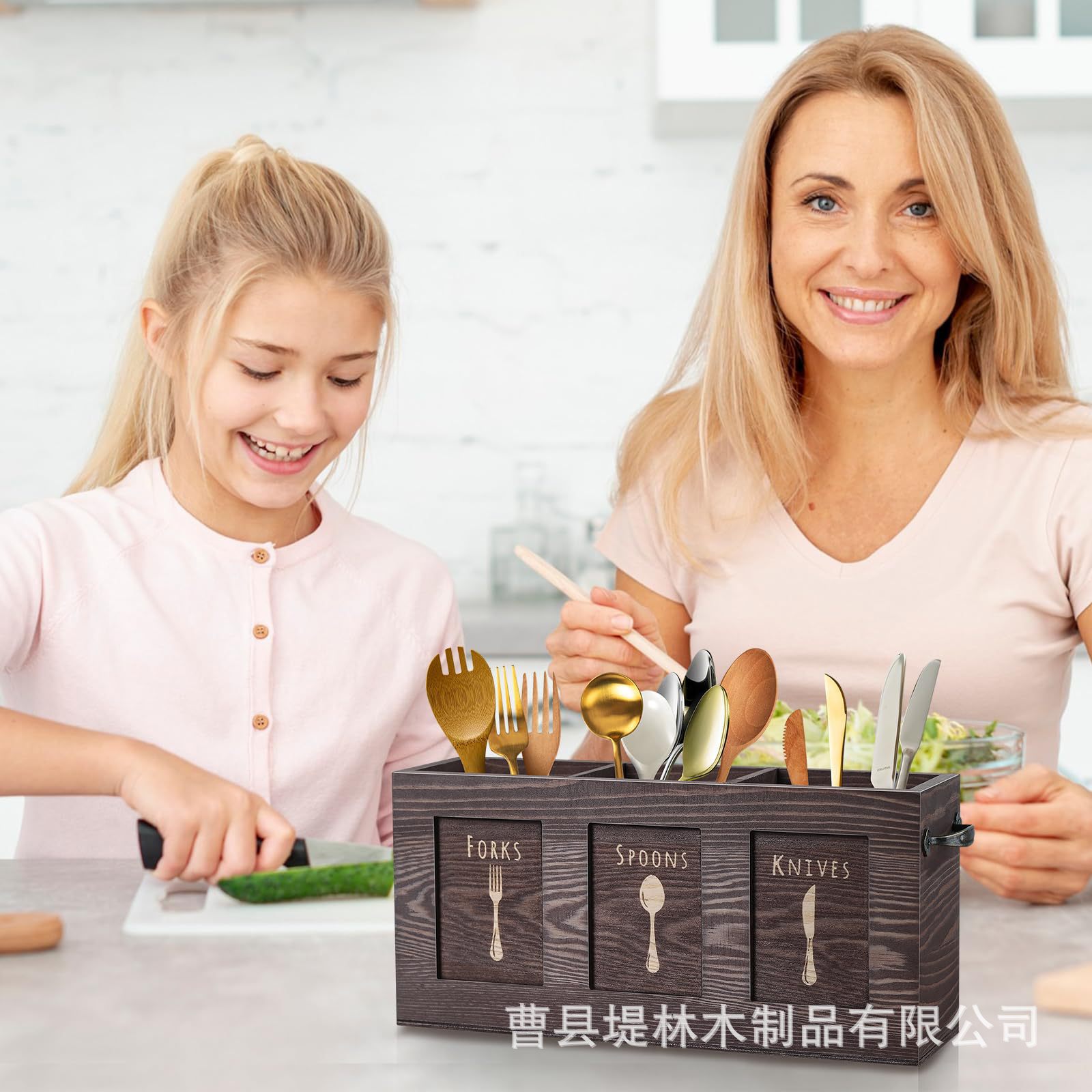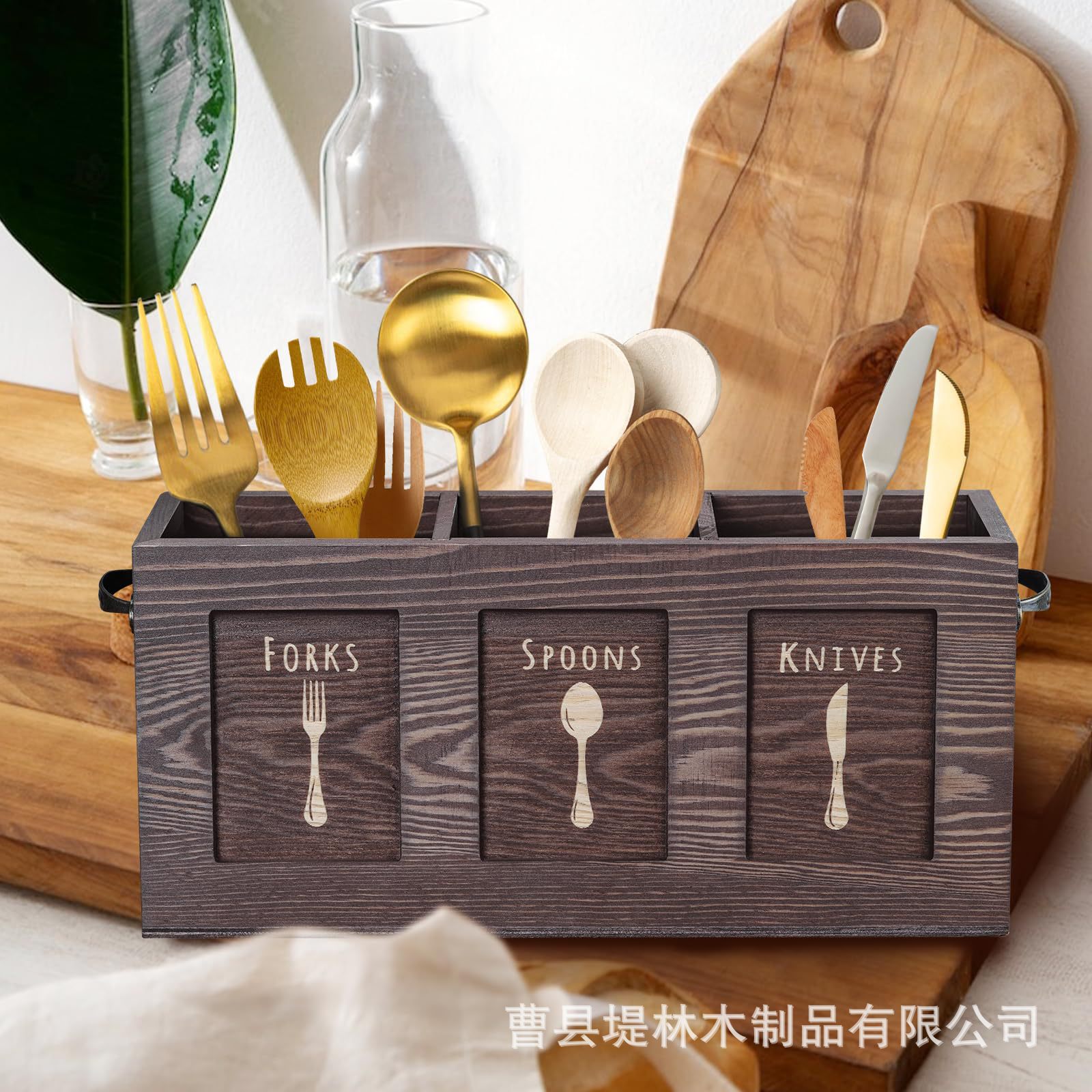나무 식기 상자 식기 보관 상자 구획은 식기 저장 상자 나무 식기 상자 식기 분류 상자입니다.스토어 가기