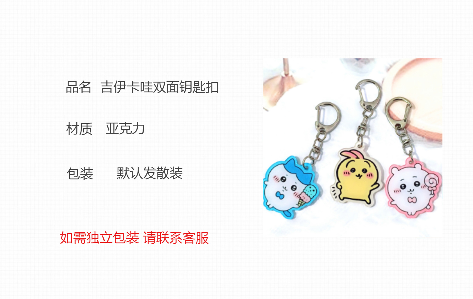 可爱chiikawa吉伊卡哇小八双面亚克力钥匙扣包包卡通装饰挂件批发