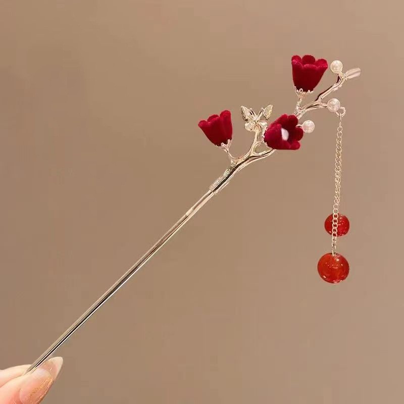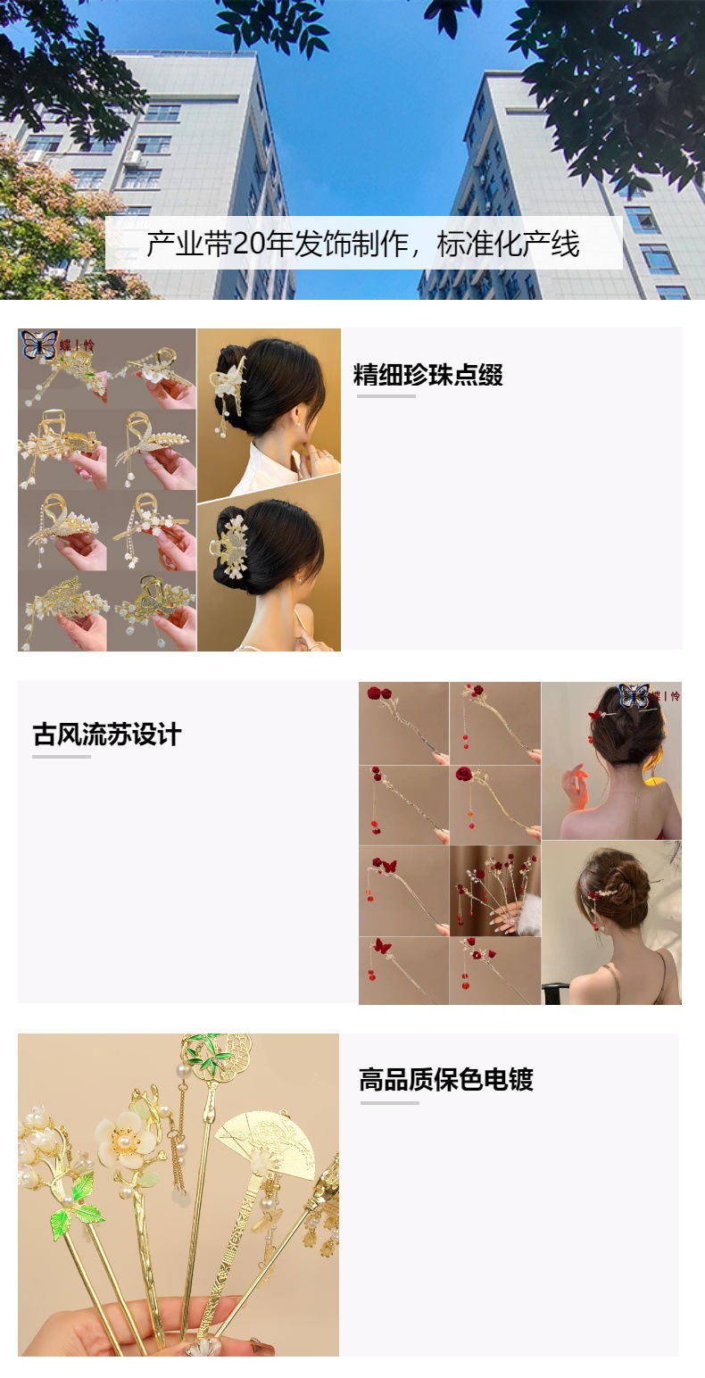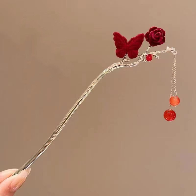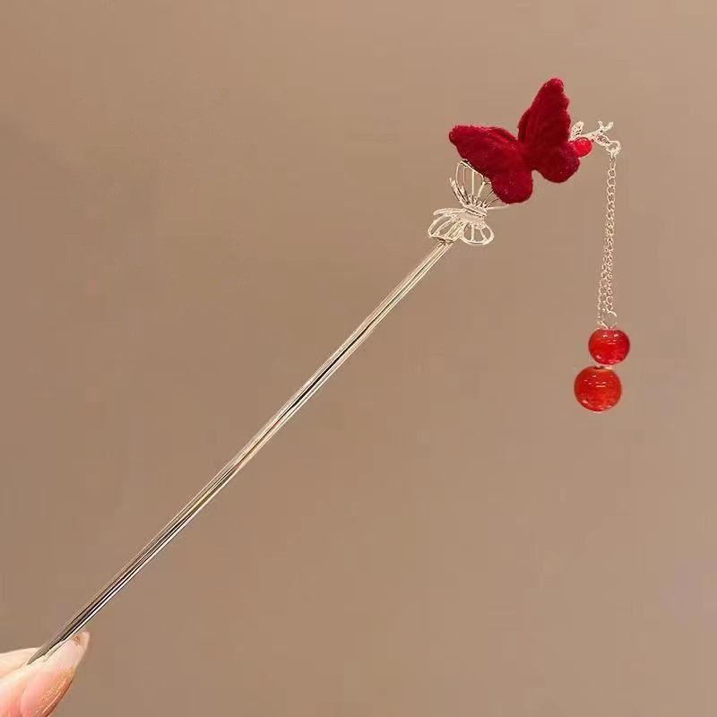 중국풍 헤어핀, 고대 스타일의 태슬 장식, 여성용 한복 액세서리, 대형 헤어핀, 중국풍 나비와 밀 이삭 모양의 머리 장식