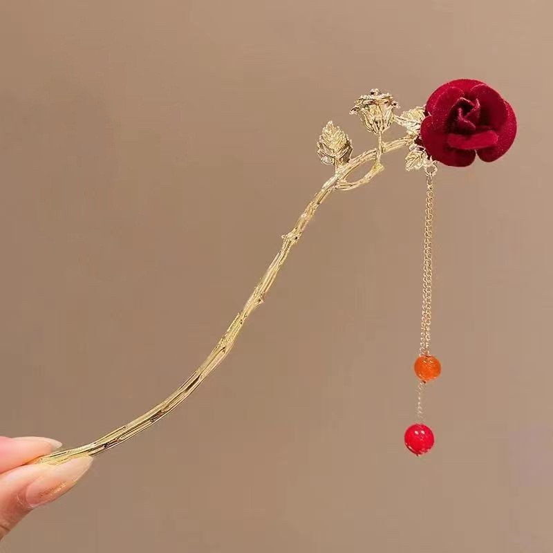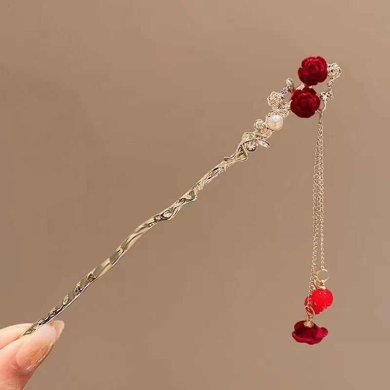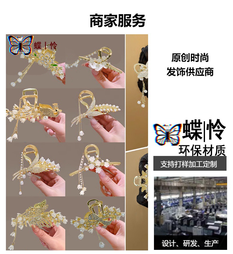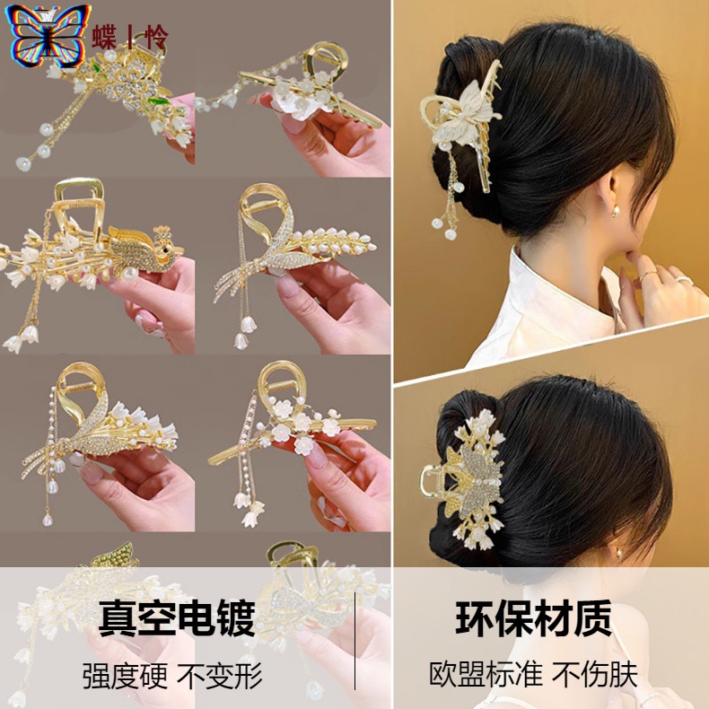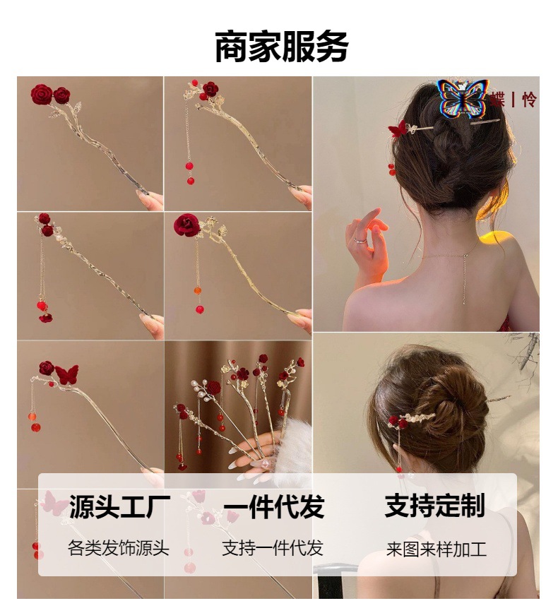 중국풍 헤어핀, 고대 스타일의 태슬 장식, 여성용 한복 액세서리, 대형 헤어핀, 중국풍 나비와 밀 이삭 모양의 머리 장식