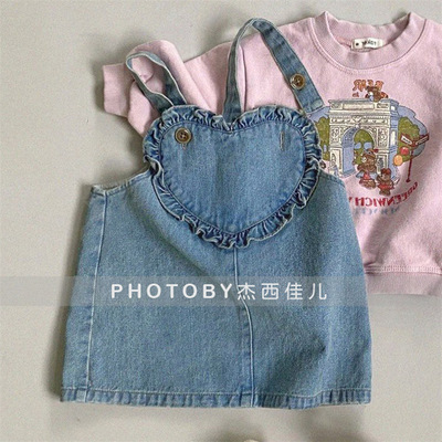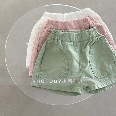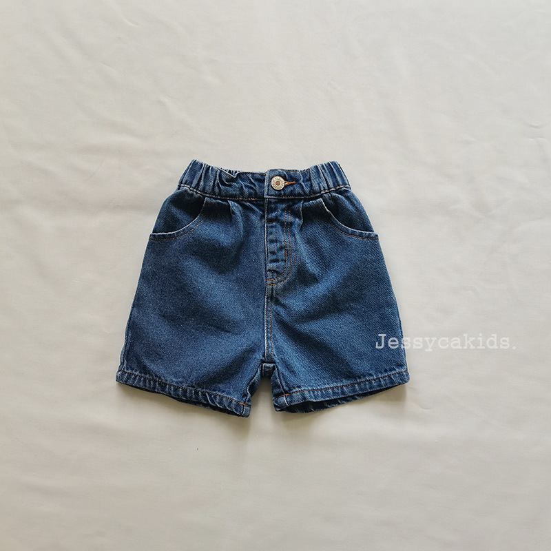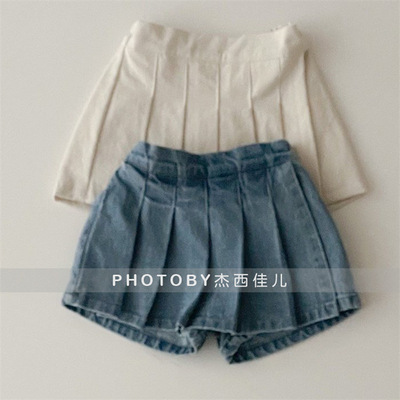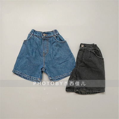 Ins 어린이 한국식 봄과 여름 유행 어린이 바지 느슨한 톤 스트레이트 세탁 데님 소년 소녀를위한 캐주얼 반바지스토어 가기