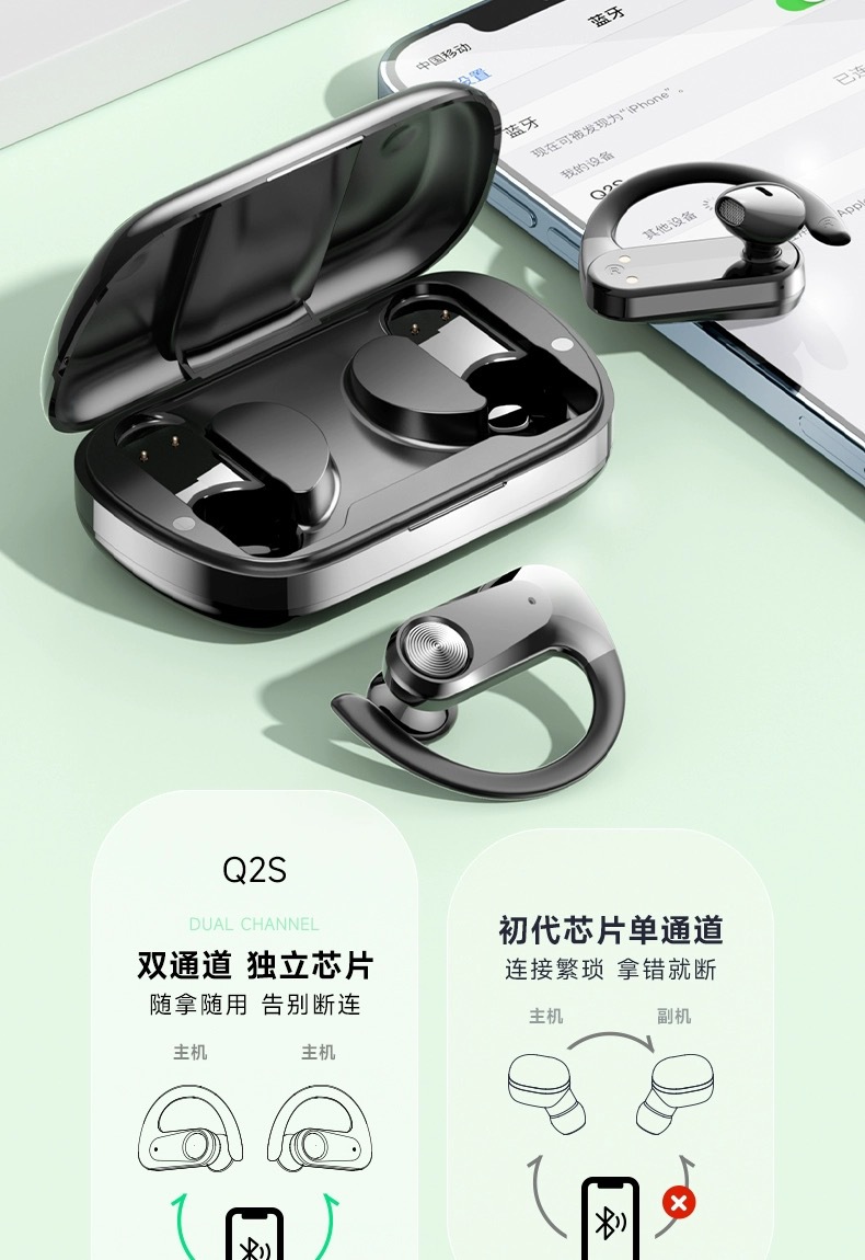 국경 간 대외 무역 Q2S 카드 블루투스 헤드셋 무선 블루투스 헤드셋은 귀 스포츠를 실행