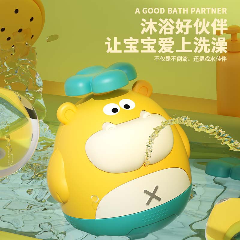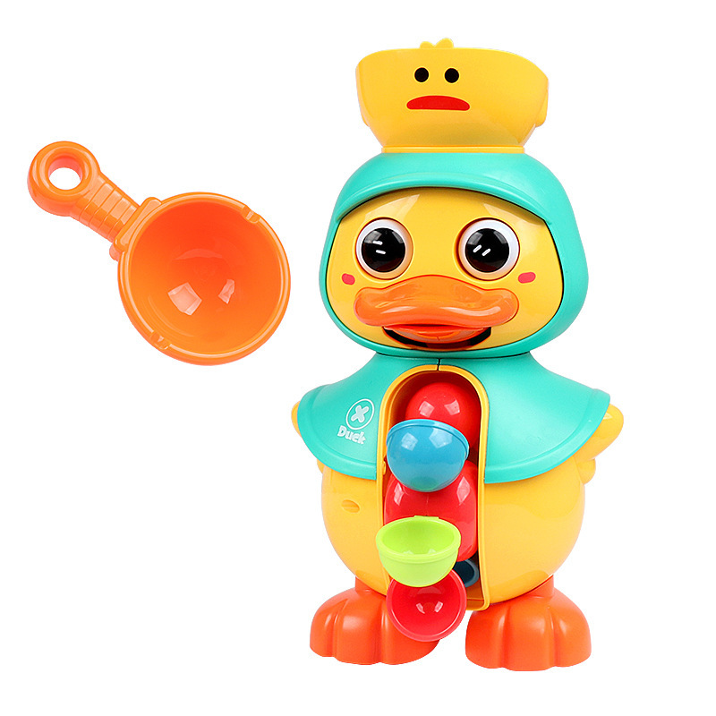 跨境新款萌萌鸭旋转水车带勺子宝宝洗澡玩具婴儿沐浴小黄鸭转转乐