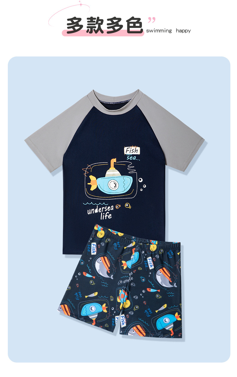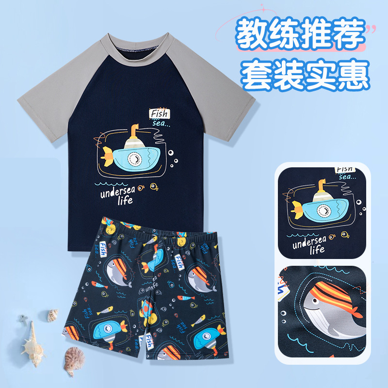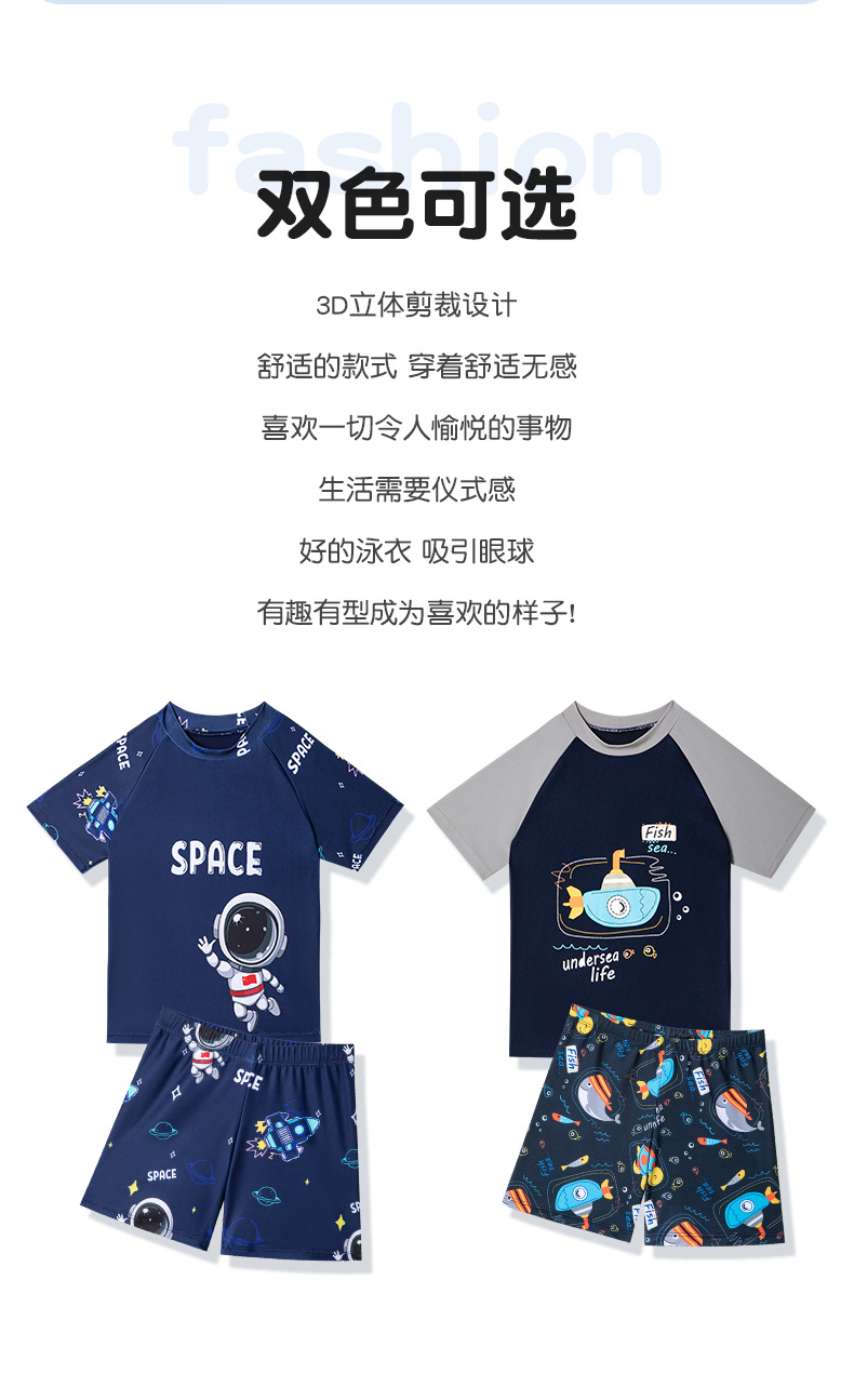 작은 우주선 맞춤형 인쇄 소년 수영복 분할 재고 도매 해변 휴가 온천 수영복 어린이