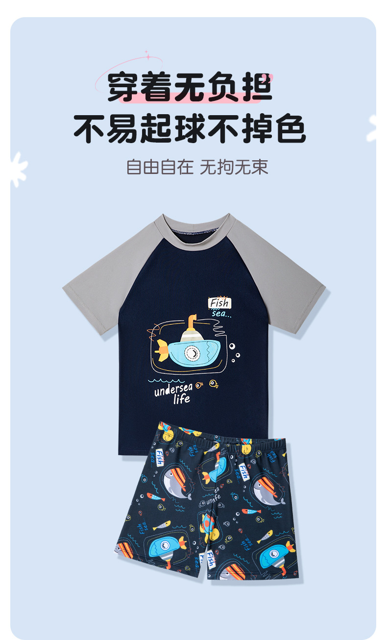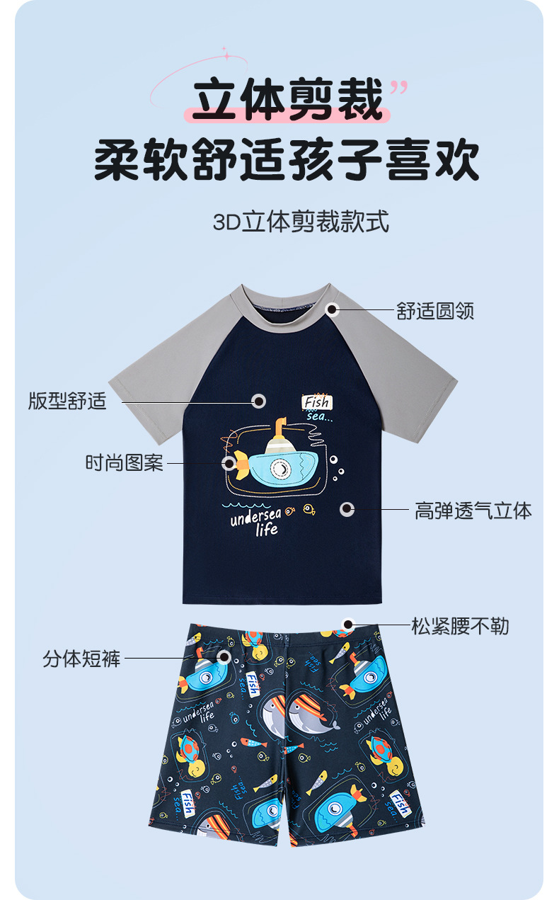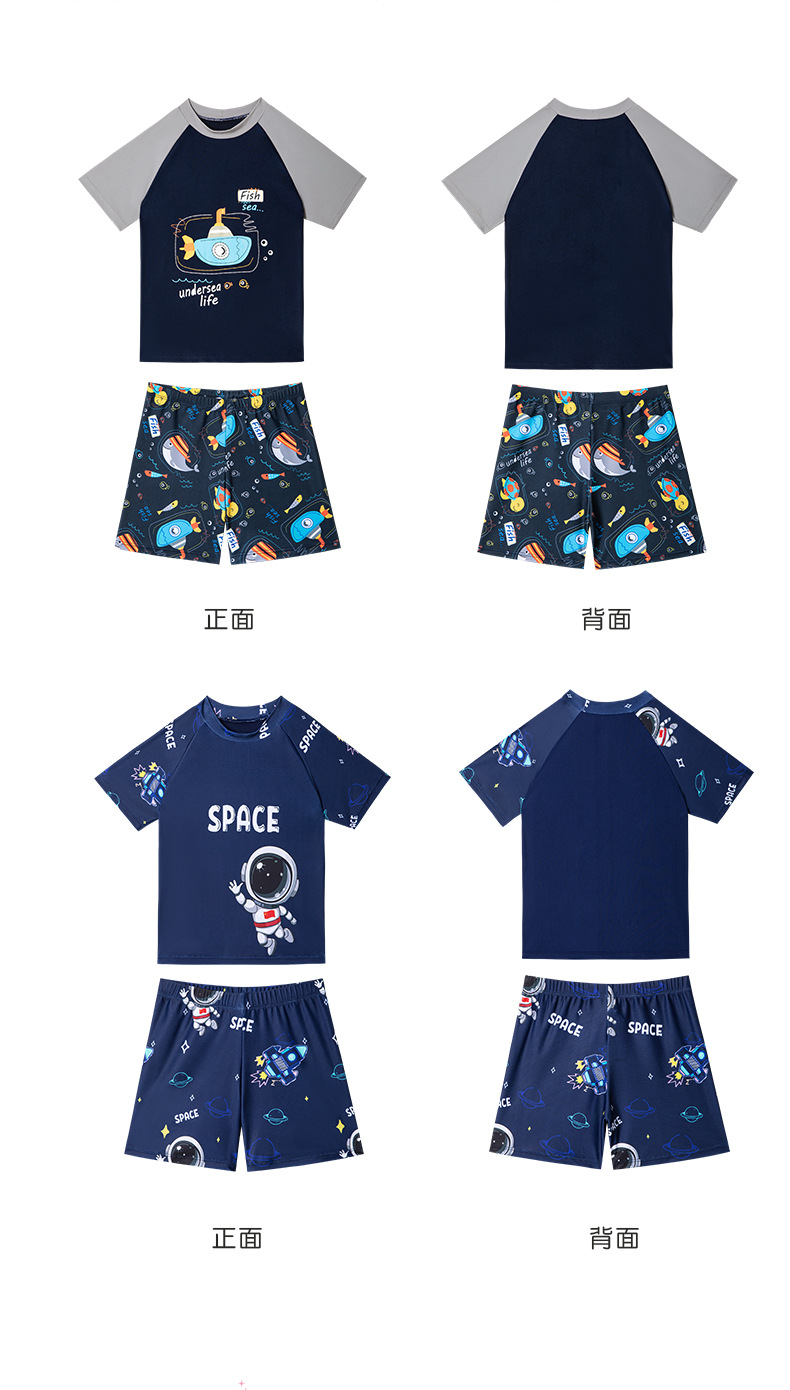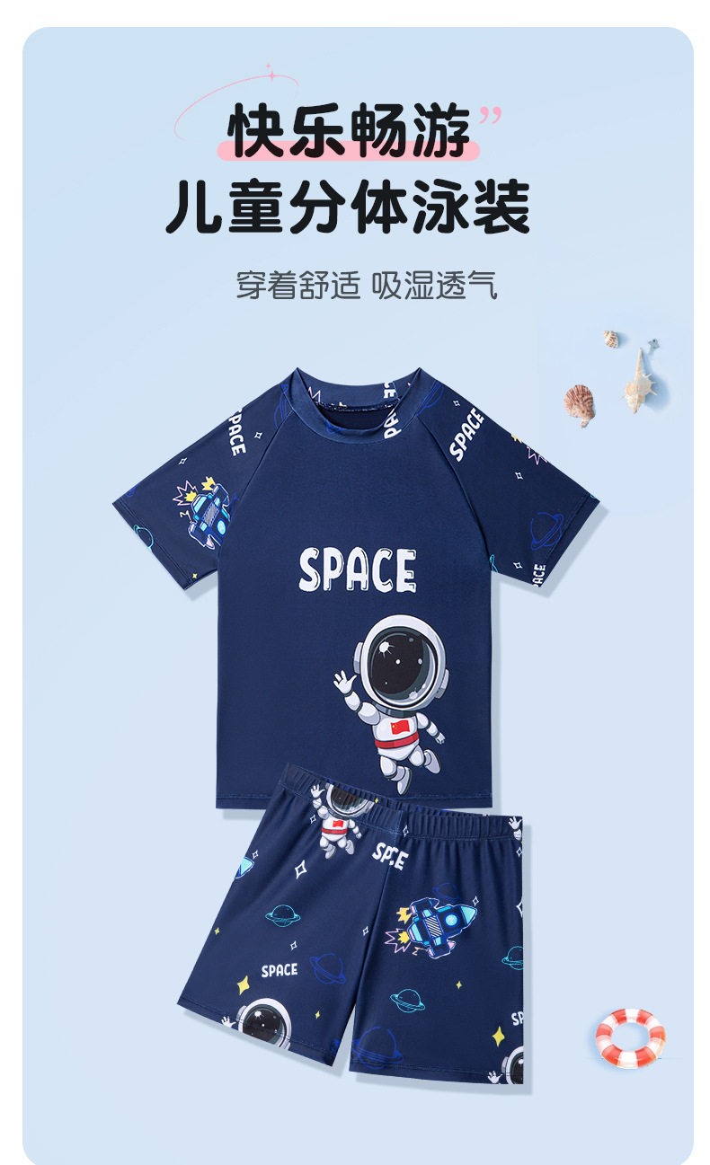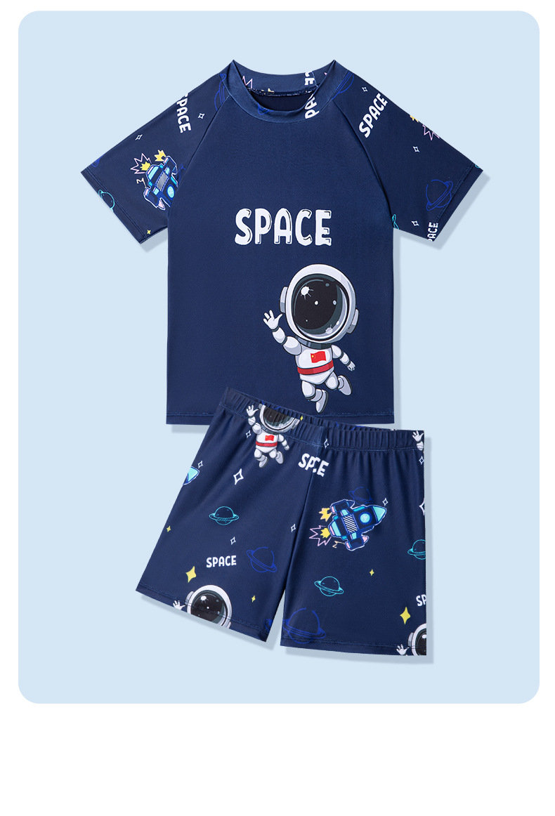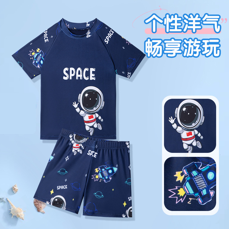 작은 우주선 맞춤형 인쇄 소년 수영복 분할 재고 도매 해변 휴가 온천 수영복 어린이스토어 가기