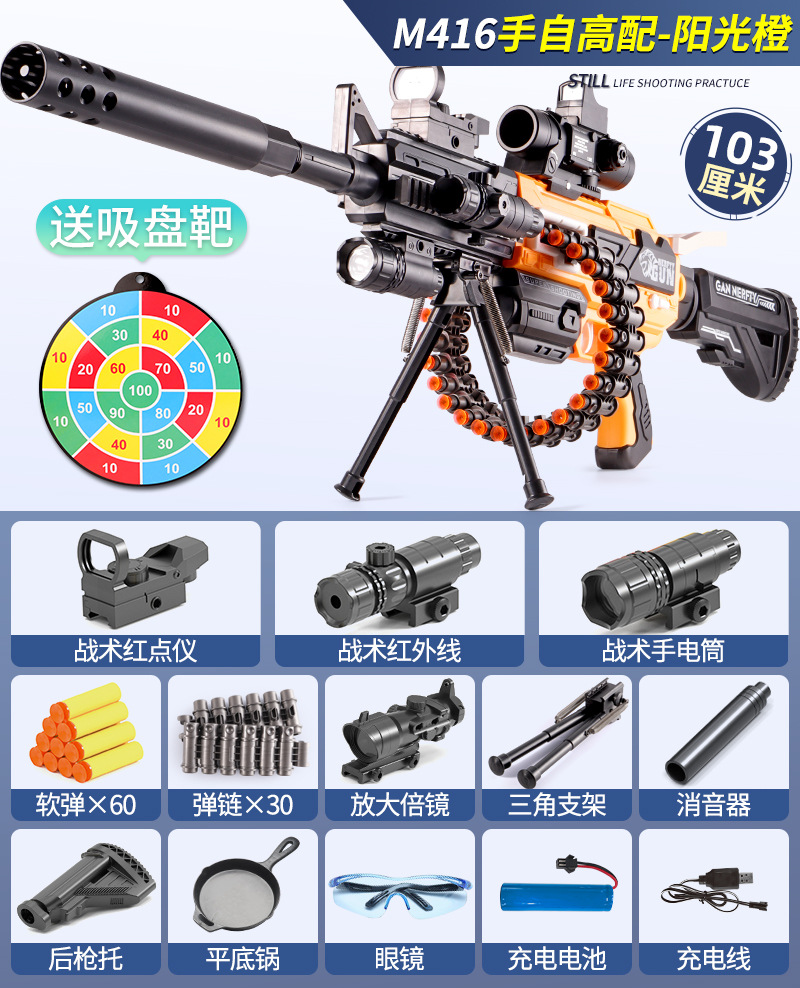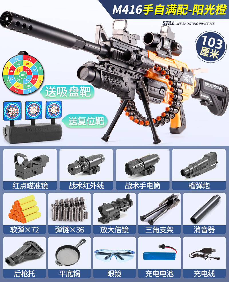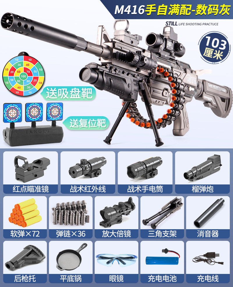 키즈 소년 장난감 총 M416 전기 소프트 Bullette 총 시뮬레이션 개틀 기계 총 장난감 발사기