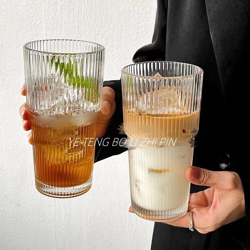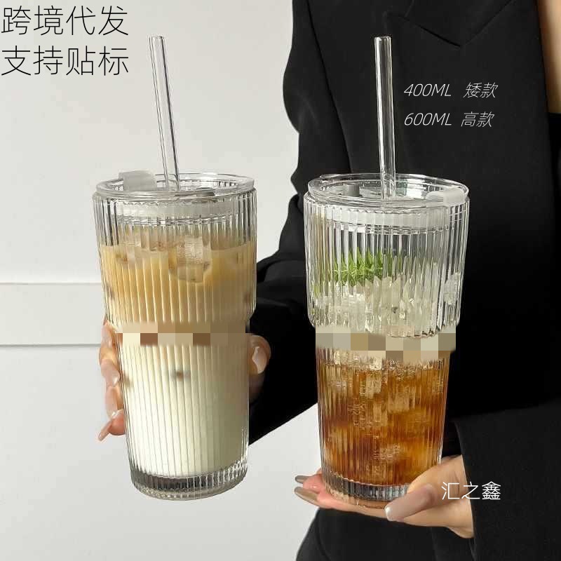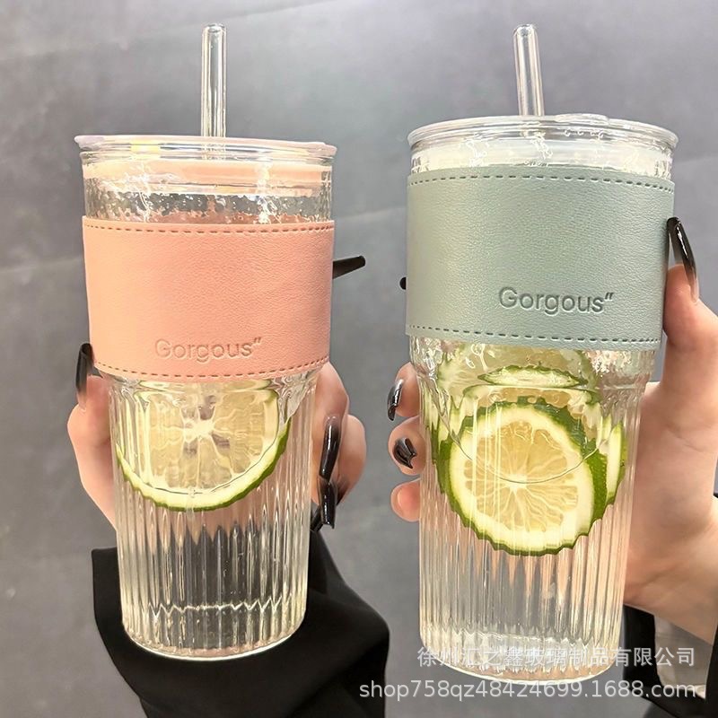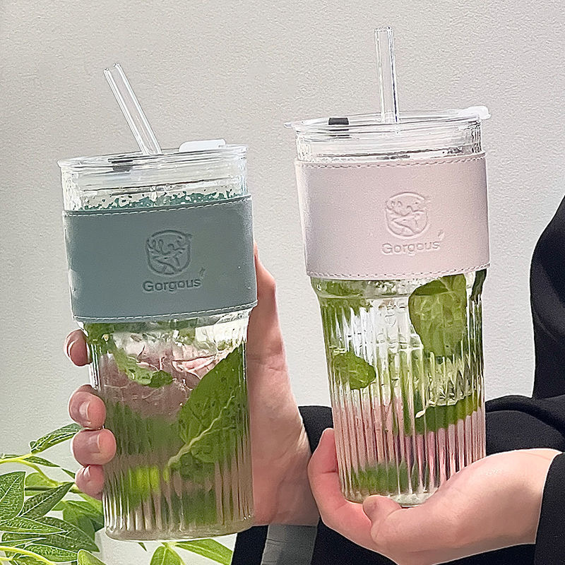 수직 스트라이프 대나무 컵 유리 밀짚 커피 컵 높은 색상 가치 두 배 음료 컵 푸싱 선물 컵 인 풍수 컵스토어 가기