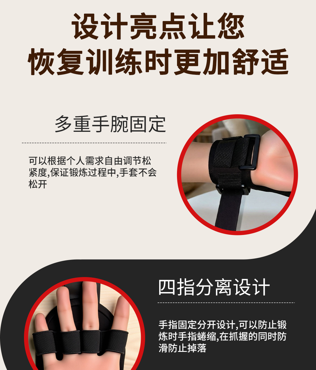 보조 장갑은 운동을 회복시키고 손가락을 고정하여 노인들의 피트니스 훈련과 손바닥 그립력 향상을 위한 손가락 분리 설계를 제공합니다.