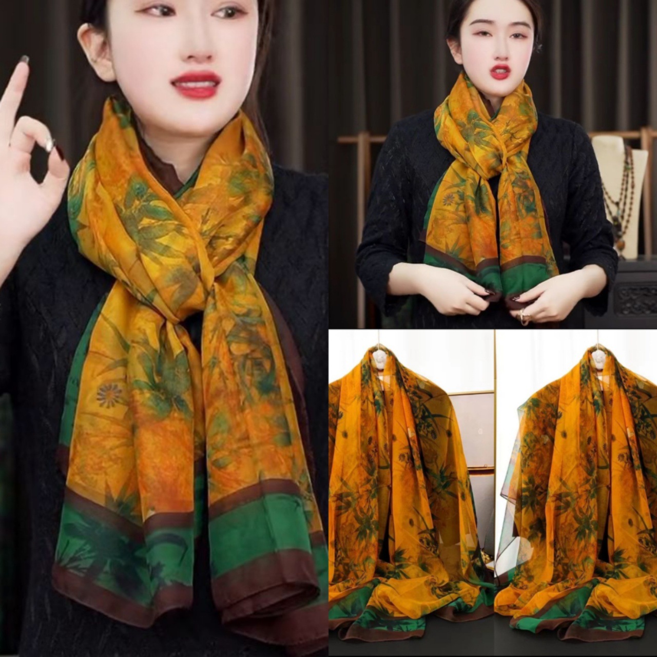 Yourou 원사 프린트 스카프 여성용 올 매치 패셔너블 오버 사이즈 비치 타월 롱 숄 스카프 듀얼 사용 서양식 스카프