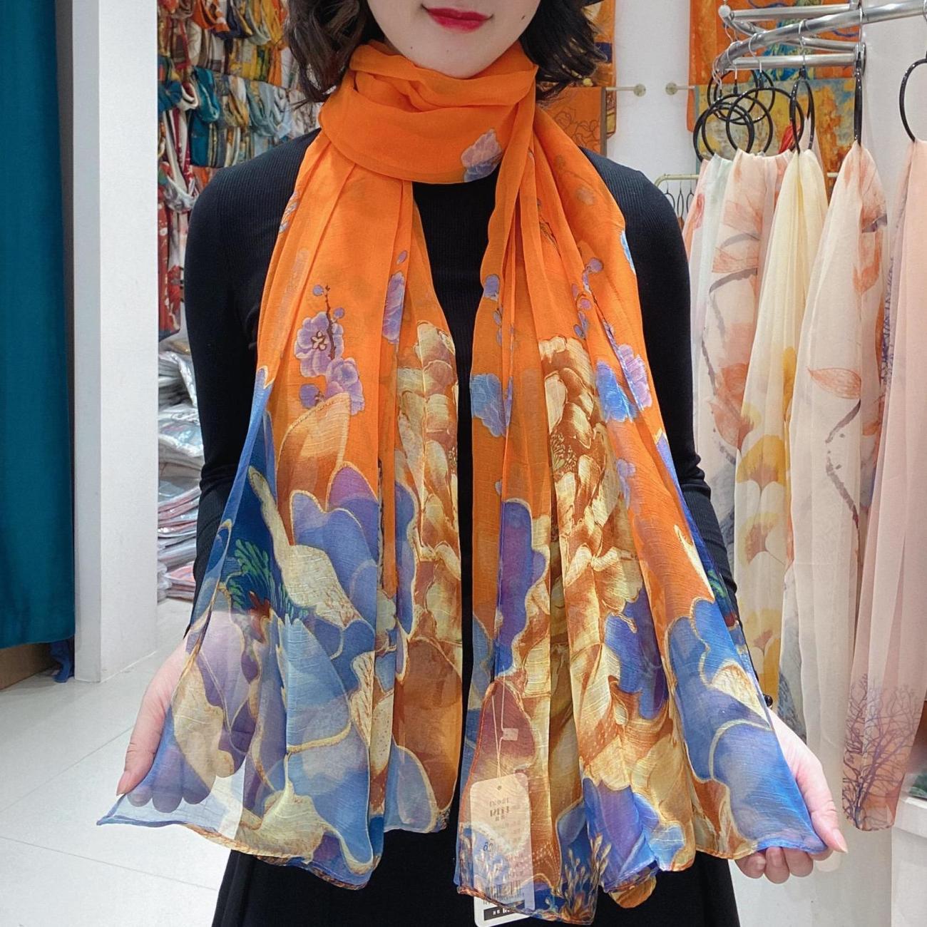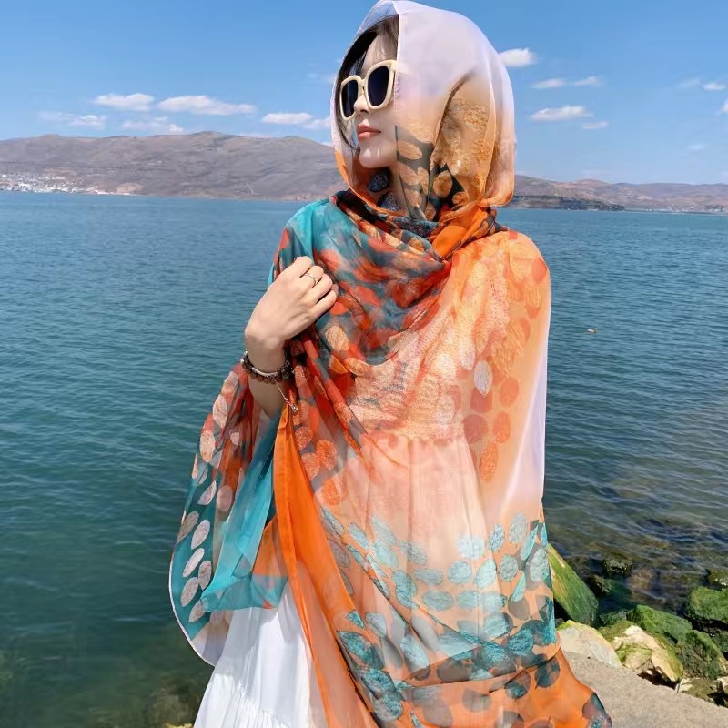 Yourou 원사 프린트 스카프 여성용 올 매치 패셔너블 오버 사이즈 비치 타월 롱 숄 스카프 듀얼 사용 서양식 스카프스토어 가기
