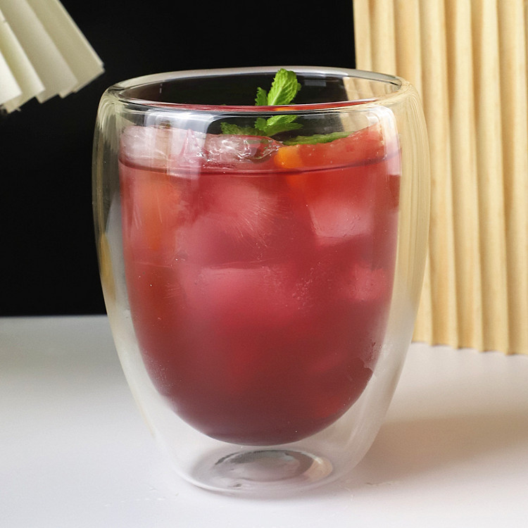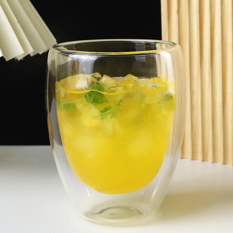 더블 레이어 유리 주방 달걀 모양의 우유 주스 컵 borosilicate 간단한 안티 스케일 절연 계란 모양의 더블 레이어 커피 컵