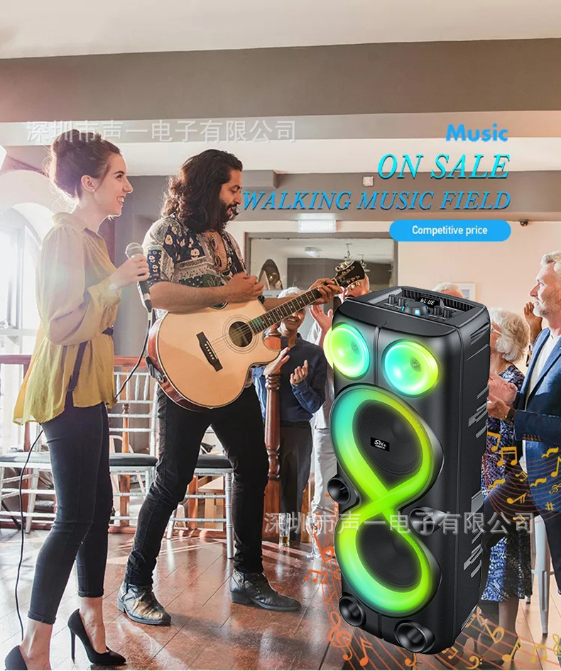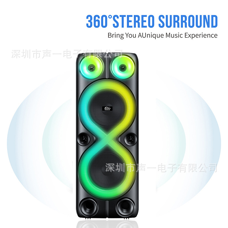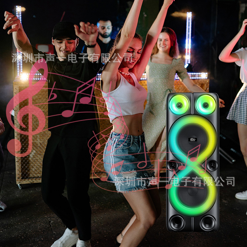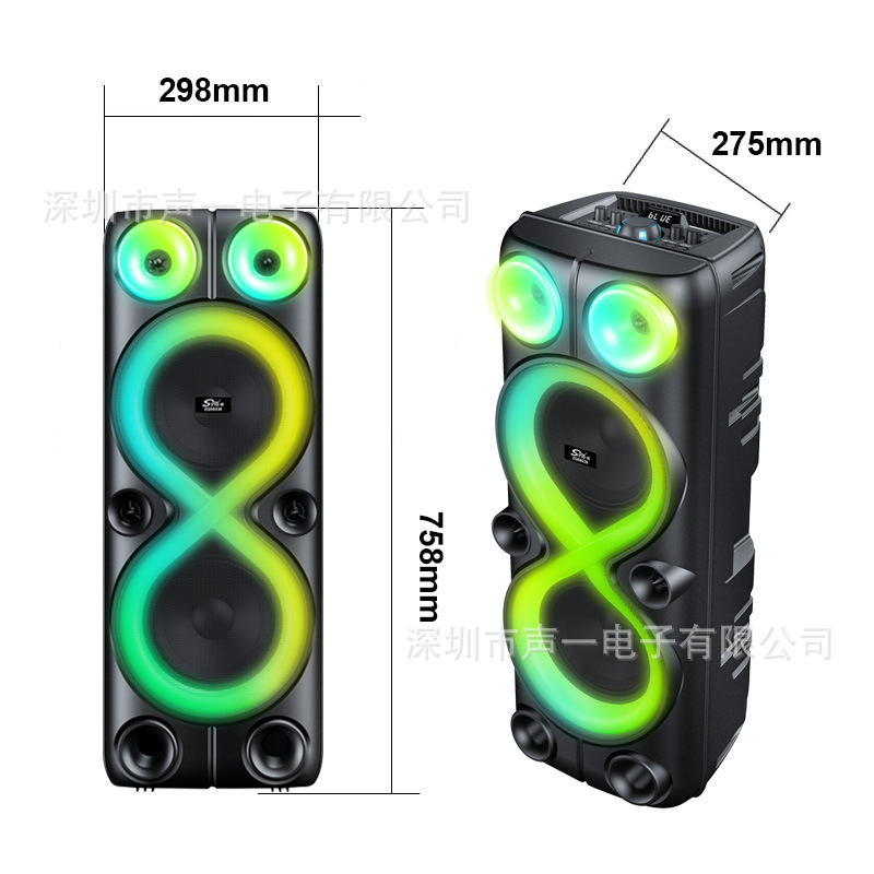 双8寸无线K歌智能蓝牙音箱低音炮双无线麦家庭派对RGB音箱