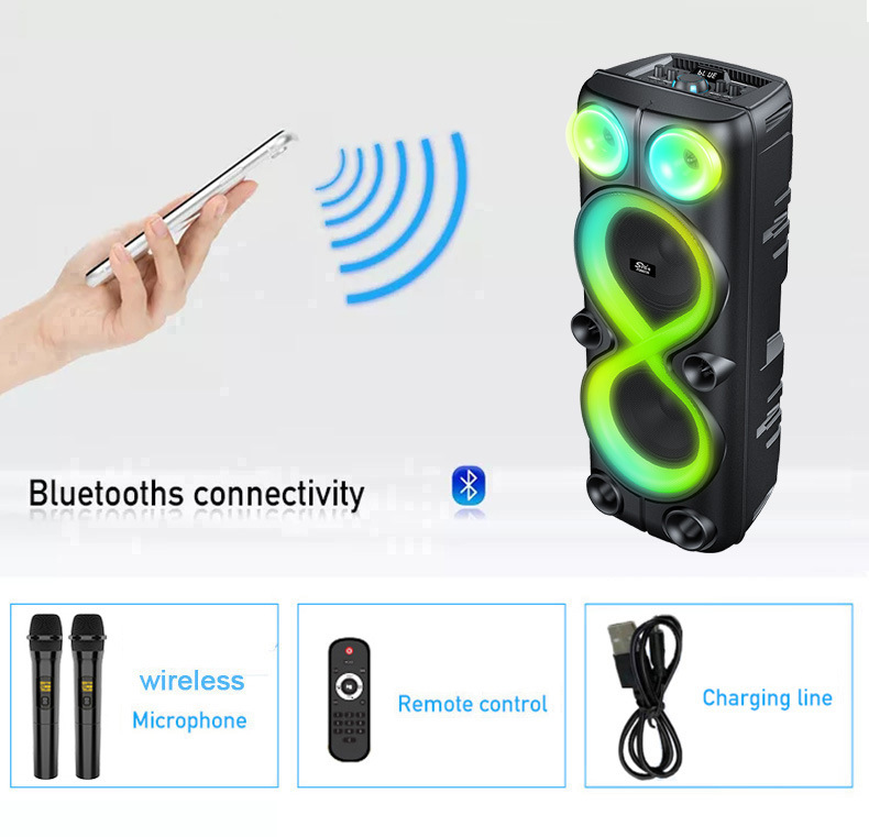 ZQS8238 dual 8-inch wireless karaoke smart Bluetooth speaker subwoofer dual wireless microphone home party speaker