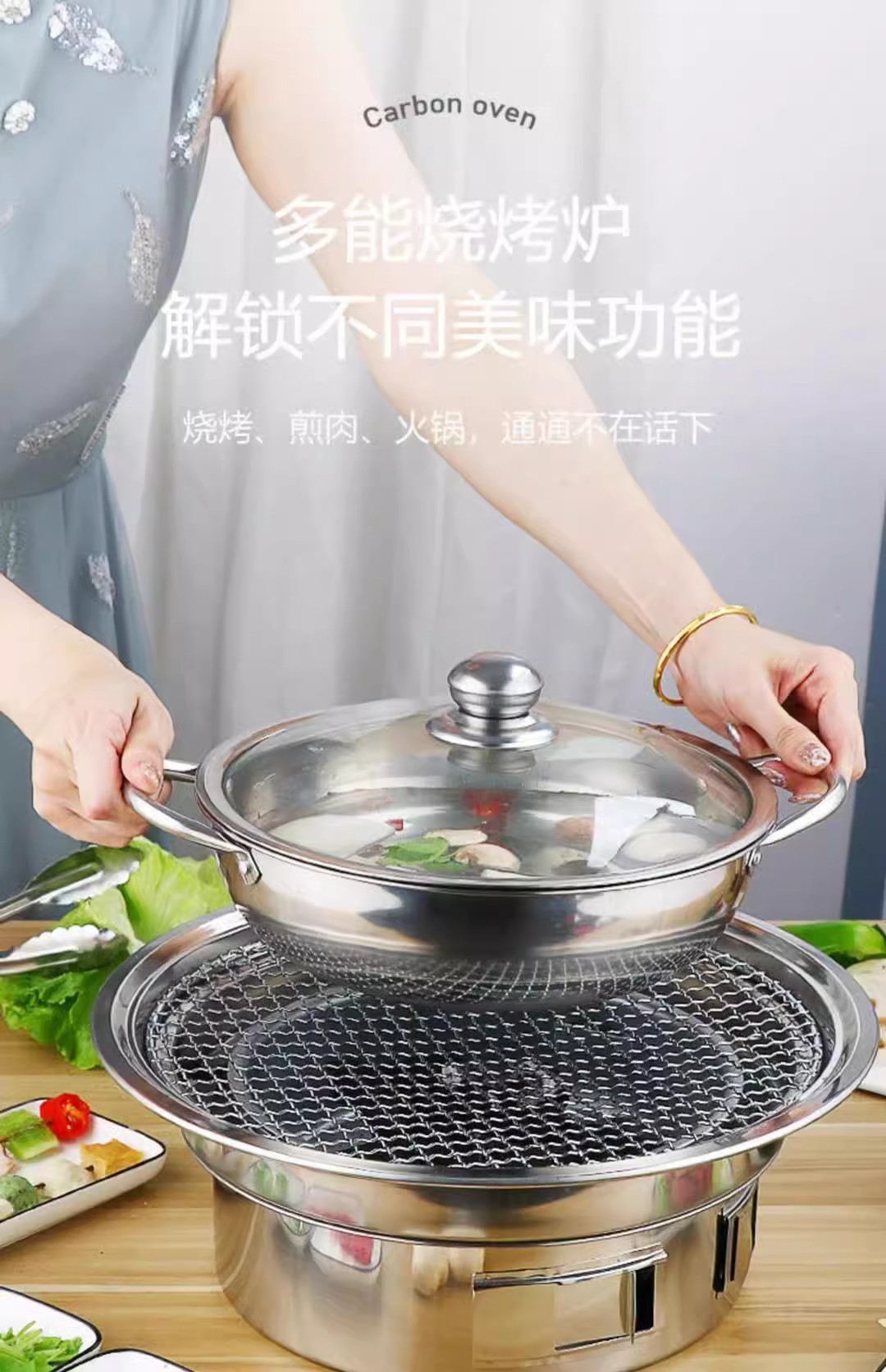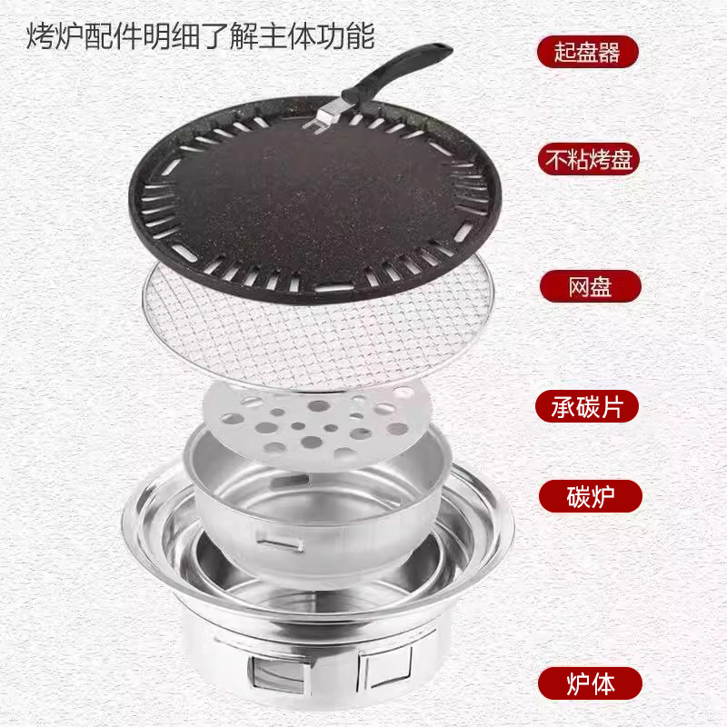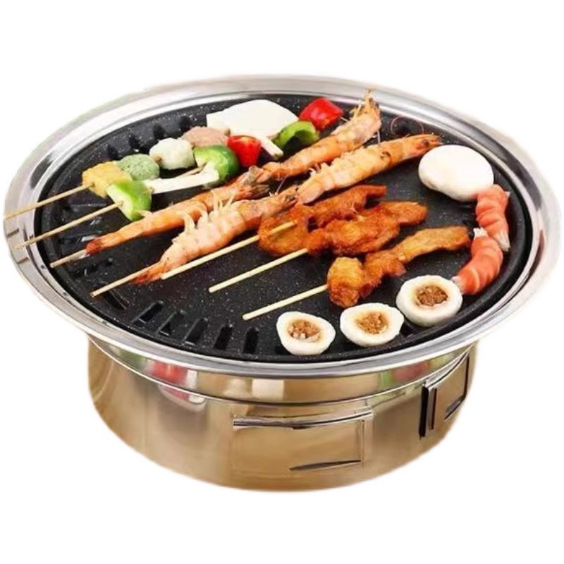 창조적 인 스테인리스 바베큐 오븐 한국 바베큐 오븐 야외 캠핑 휴대용 라운드 숯 오븐 스토브 차 요리