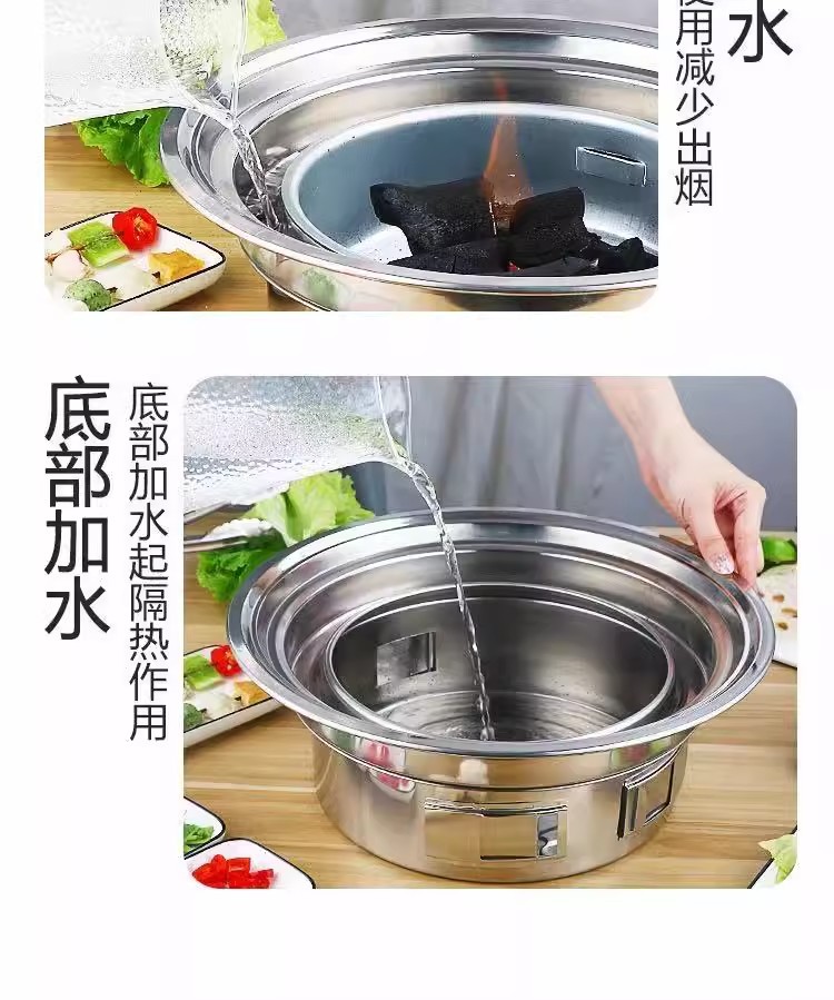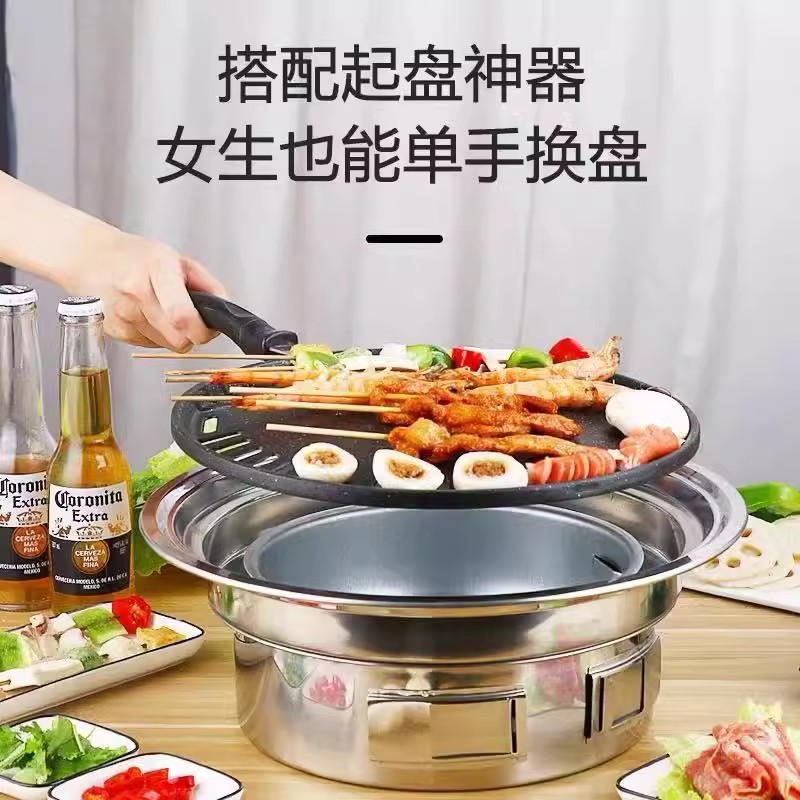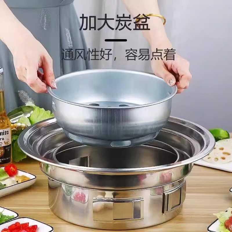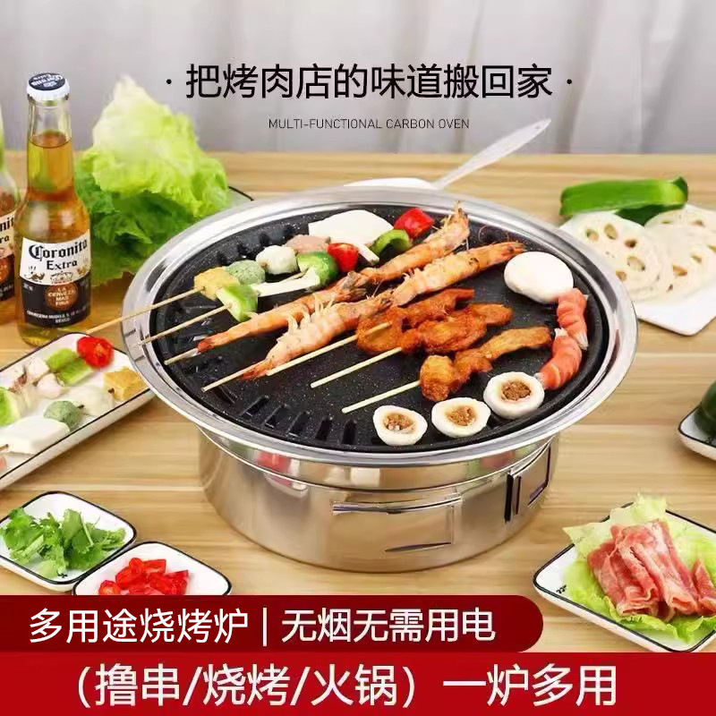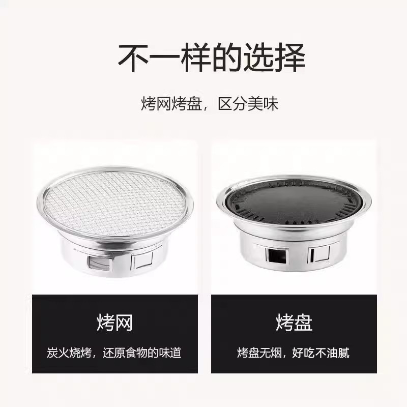 창조적 인 스테인리스 바베큐 오븐 한국 바베큐 오븐 야외 캠핑 휴대용 라운드 숯 오븐 스토브 차 요리스토어 가기