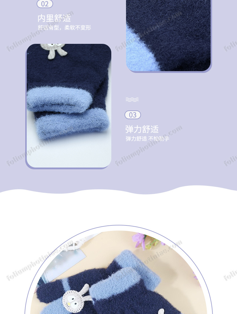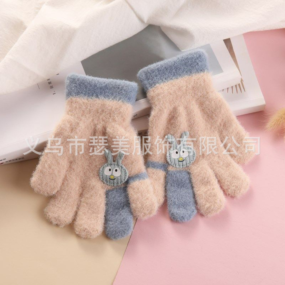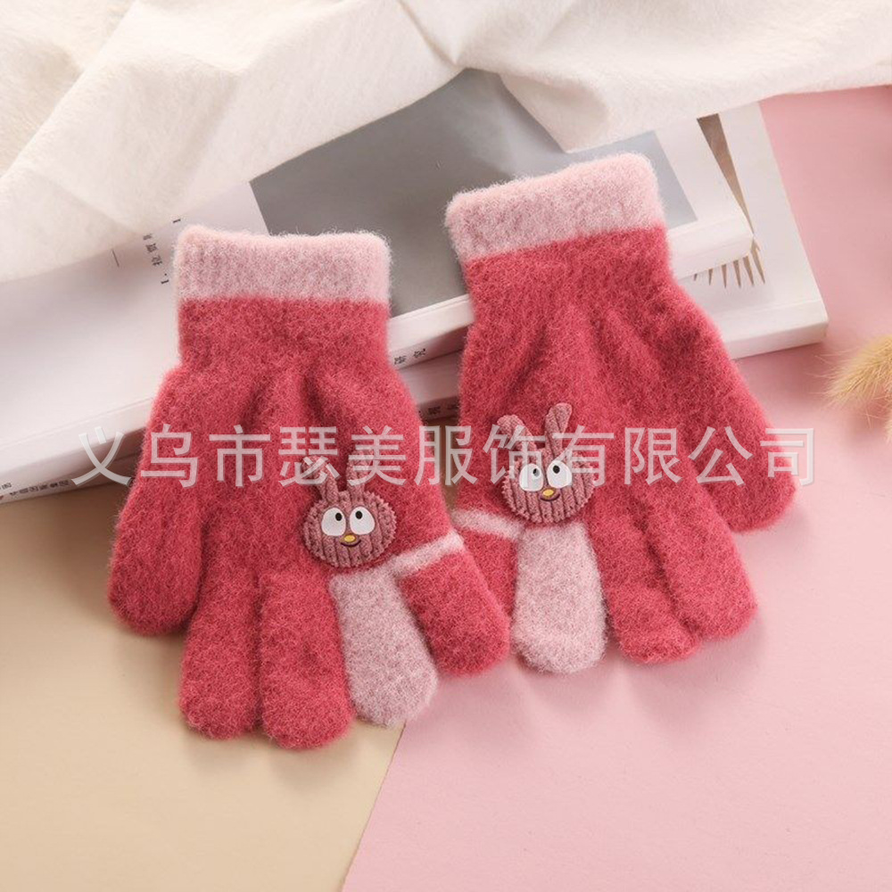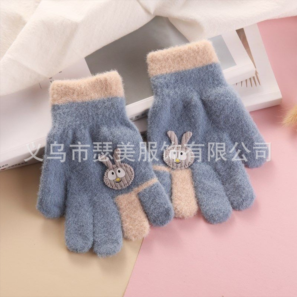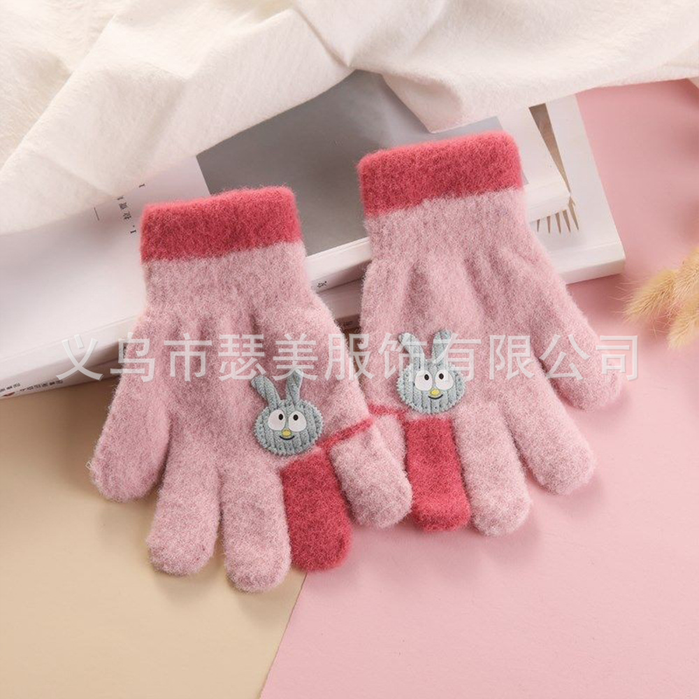 겨울 어린이 다섯 손가락 장갑 손가락 만화 토끼 기모 두껍게 따뜻한 귀여운