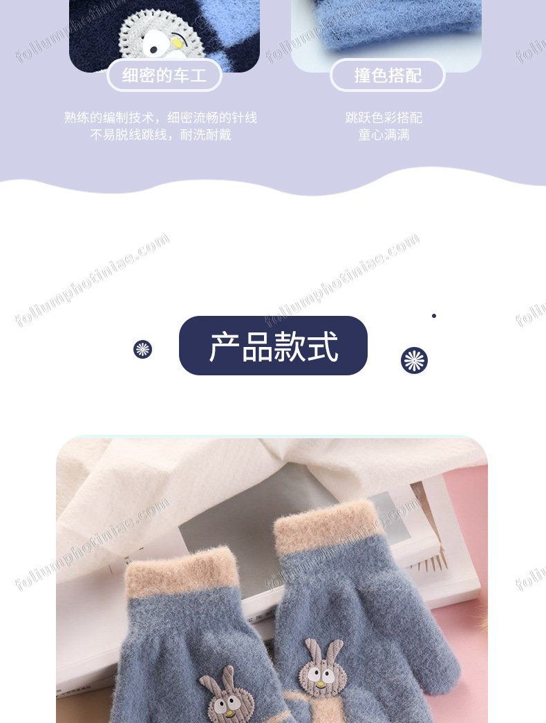 겨울 어린이 다섯 손가락 장갑 손가락 만화 토끼 기모 두껍게 따뜻한 귀여운스토어 가기