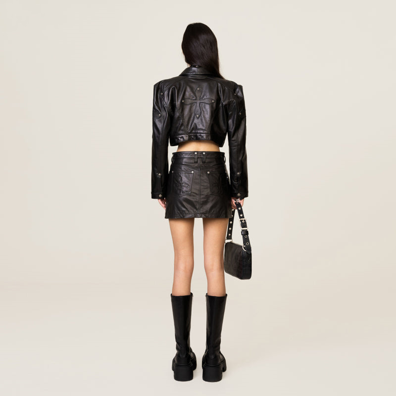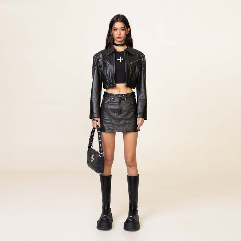 SMFK 록 스웨이드 미디 스커트스토어 가기