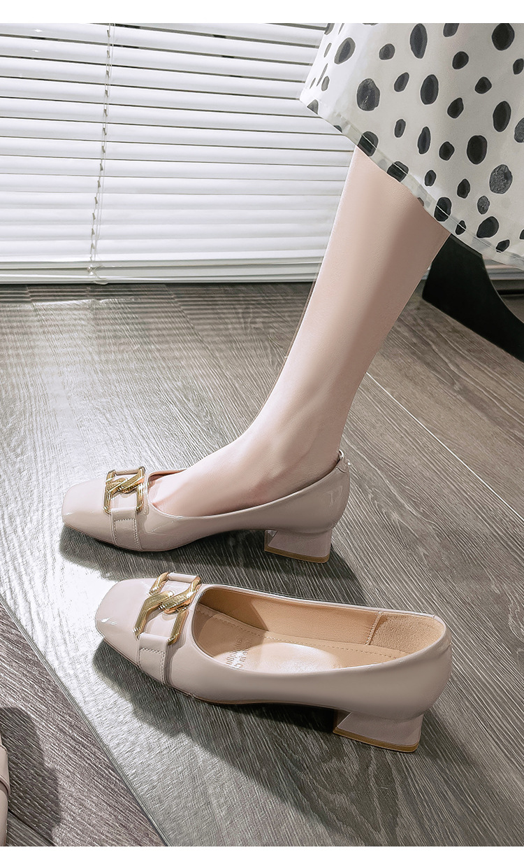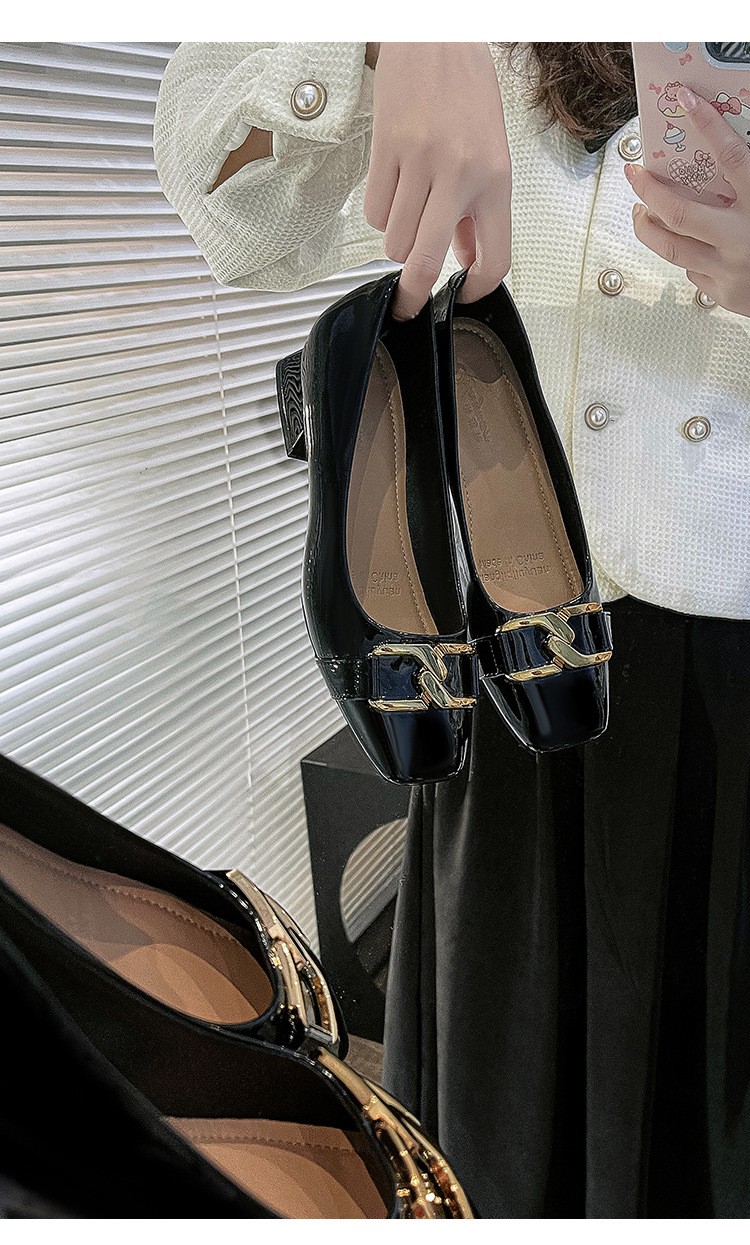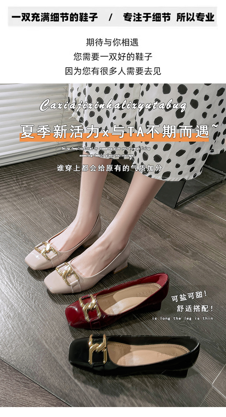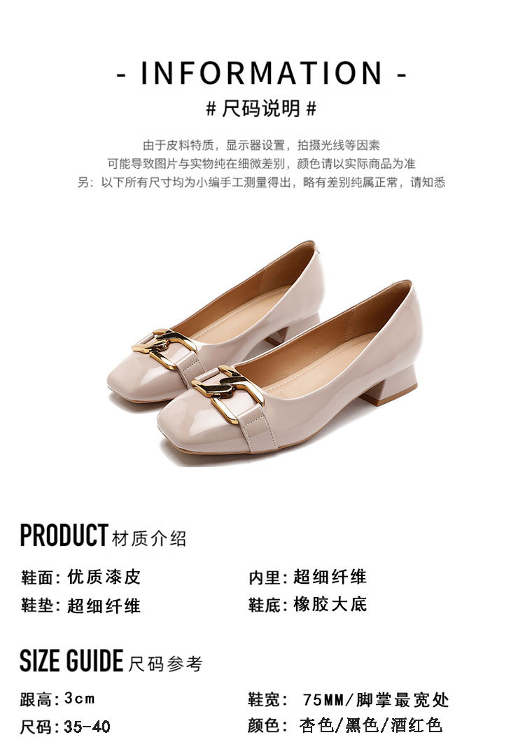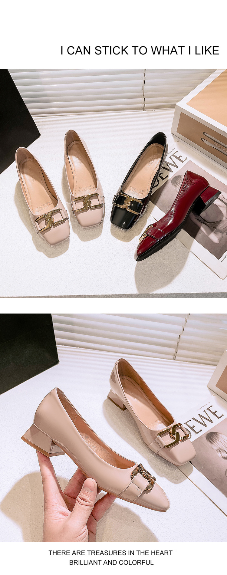여성용 청키 힐 싱글 레이어 신발 2024 봄 새로운 프랑스 복고풍 로우 힐 여성 신발 특허 가죽 버건디 스퀘어 토 하이힐스토어 가기