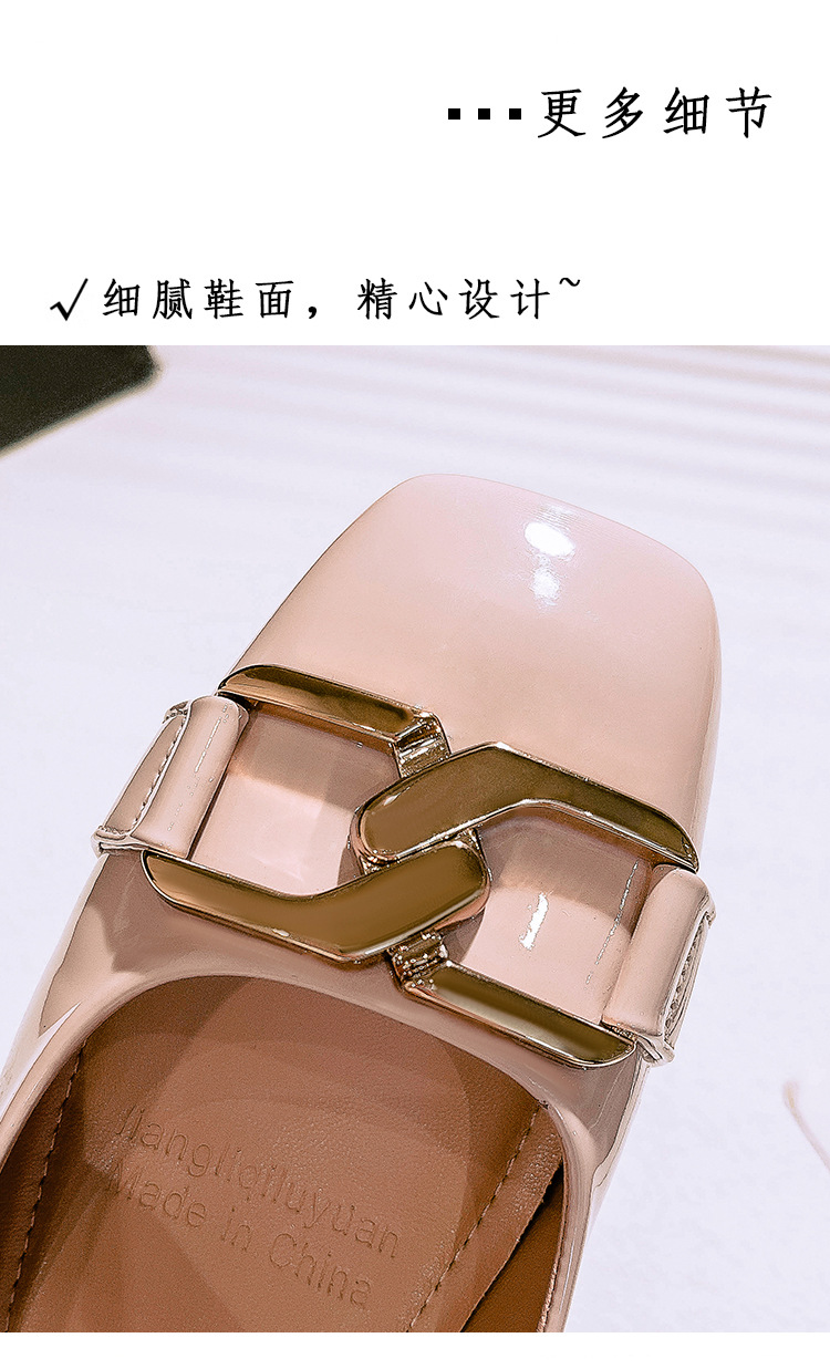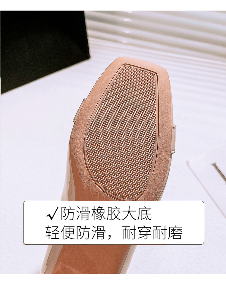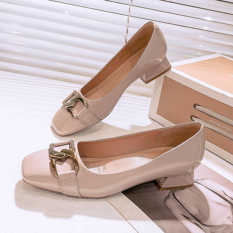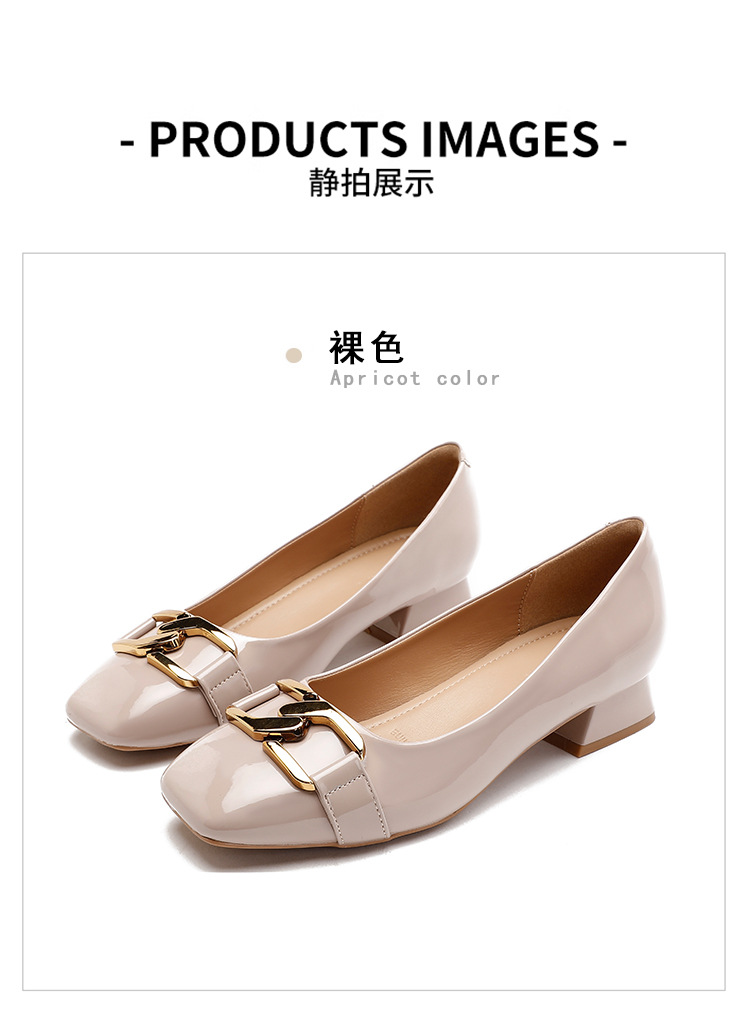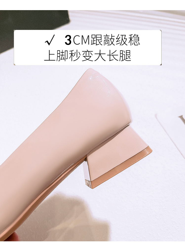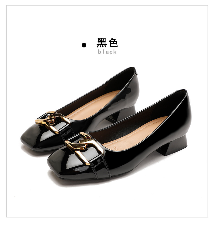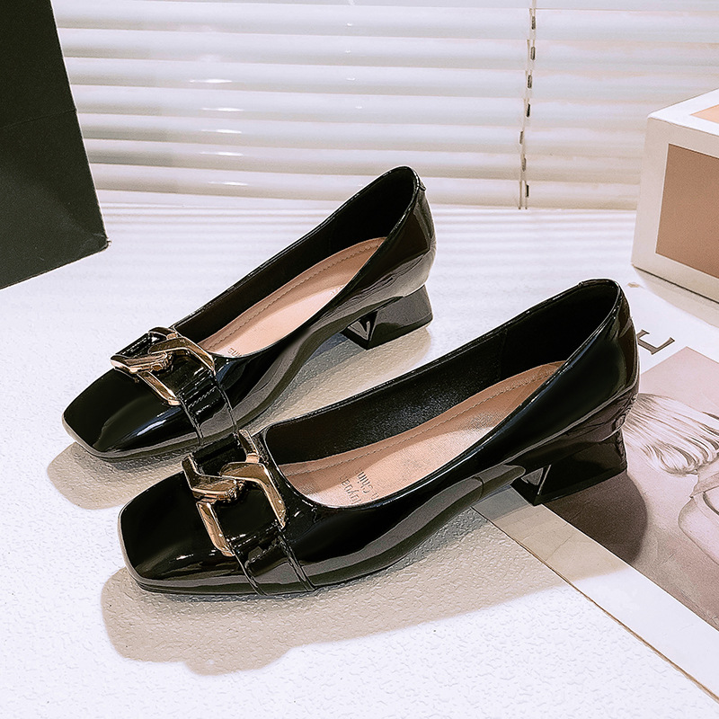 여성용 청키 힐 싱글 레이어 신발 2024 봄 새로운 프랑스 복고풍 로우 힐 여성 신발 특허 가죽 버건디 스퀘어 토 하이힐