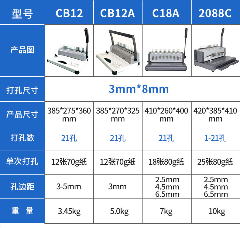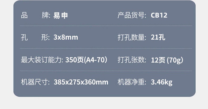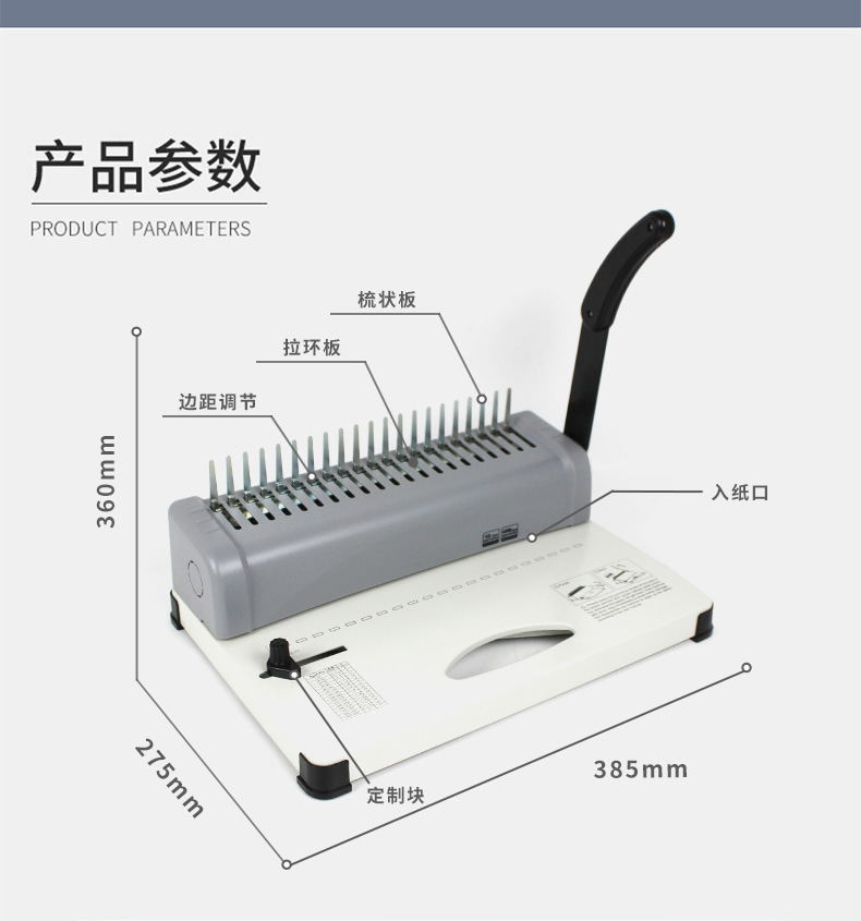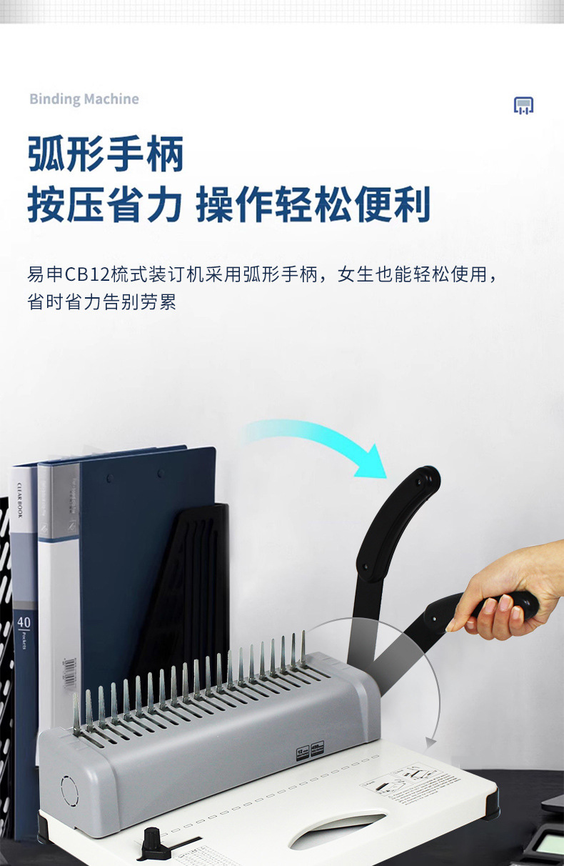 Yishen CB12 고무 링 바인딩 기계 21 치아 21 구멍 문서 부드러운 책 테스트 종이 10 구멍 클립 펀칭 바인딩 기계