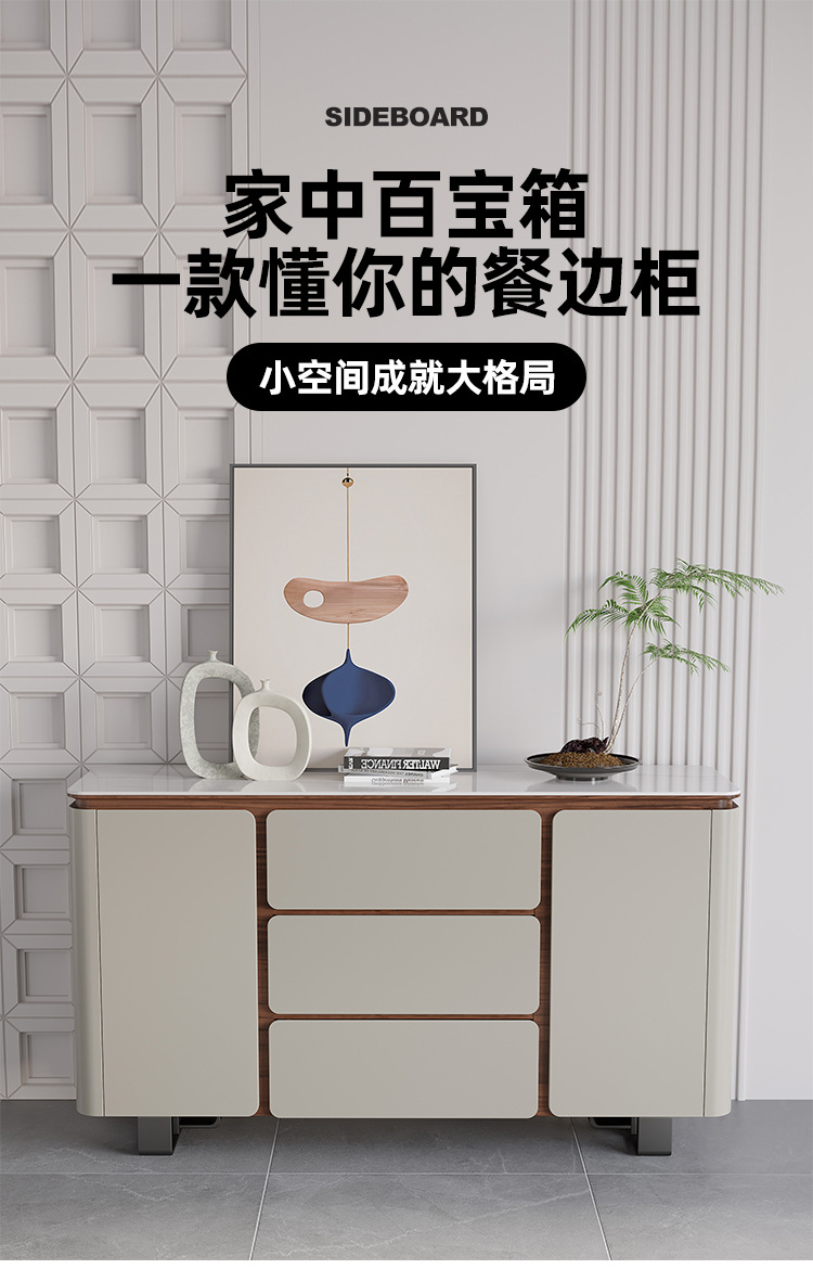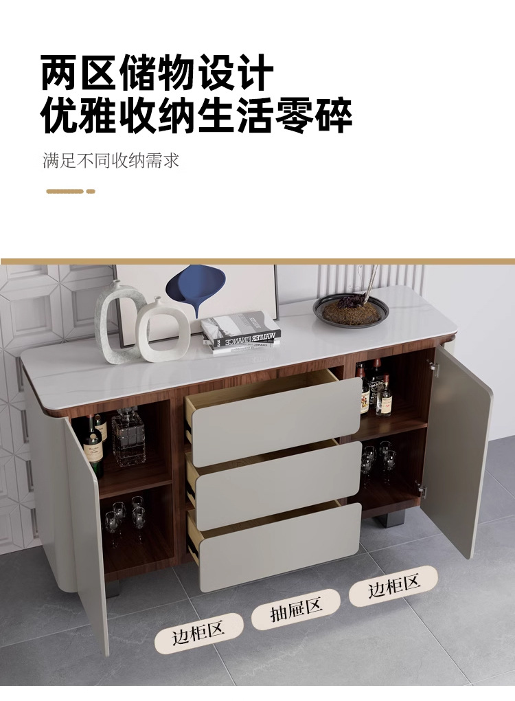 크림 스타일 록 보드 사이드 보드 캐비닛 간단한 작은 아파트 벽면 통합 홀 캐비닛 캐비닛 저장 차 바 캐비닛