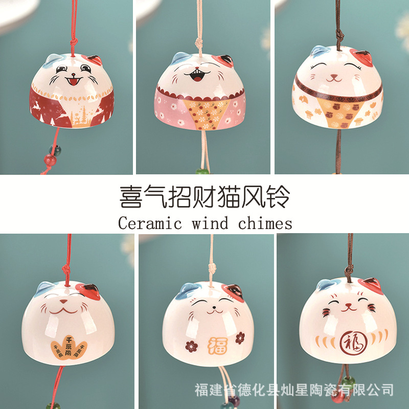 만화 행운의 고양이 바람 차임 도매 창조적 인 종 펜던트 홈 정원 장식 선물 경치 좋은 관광 기념품스토어 가기