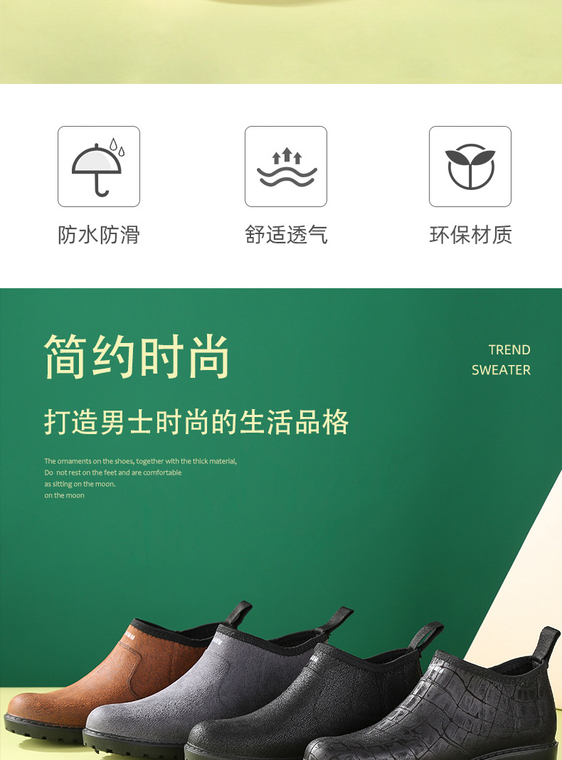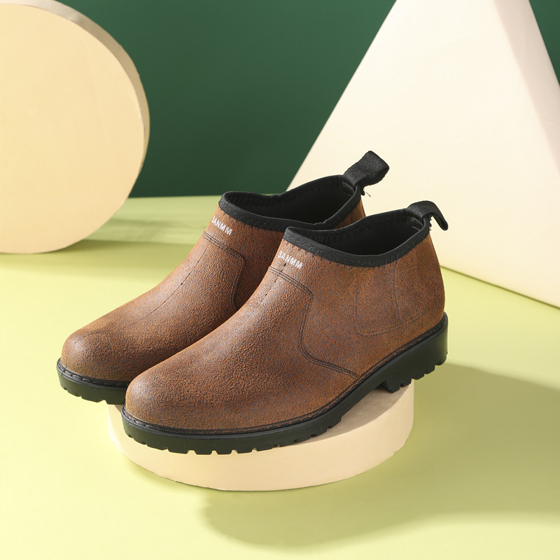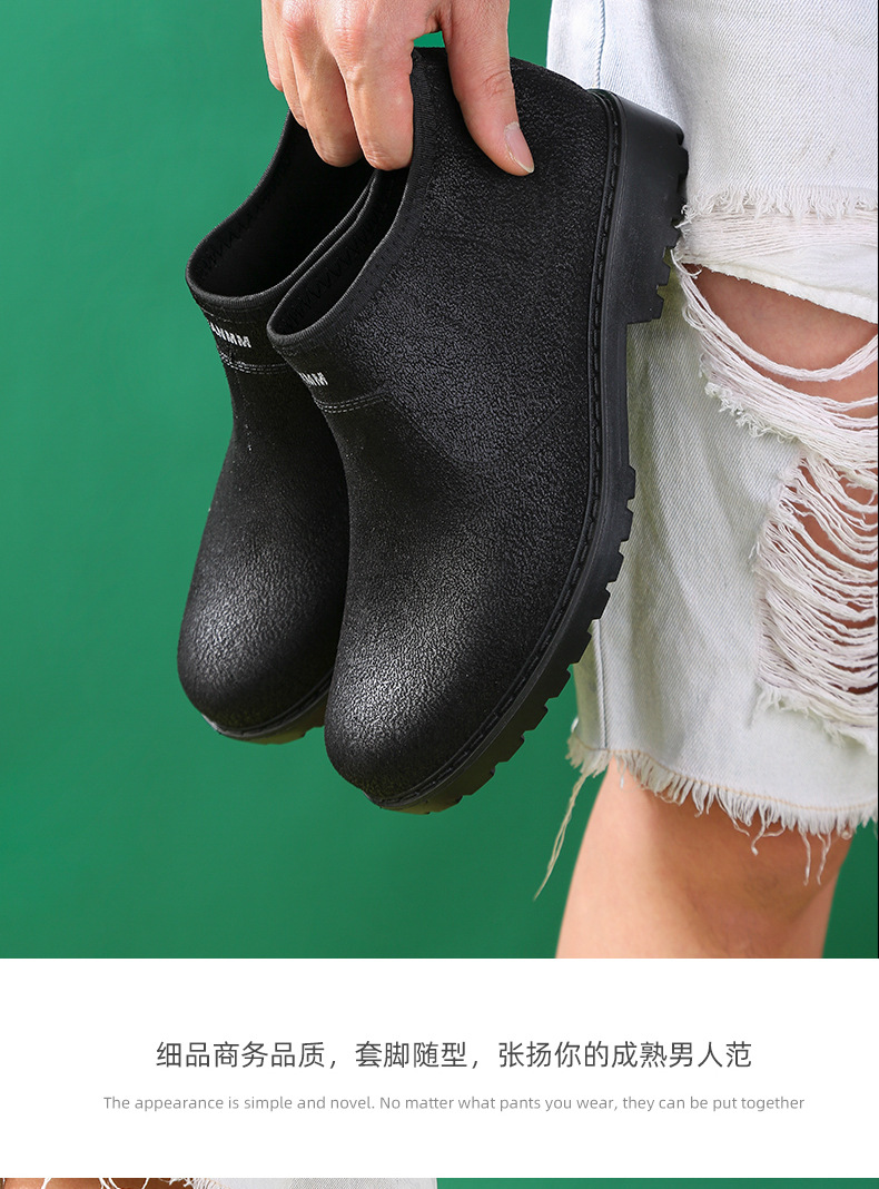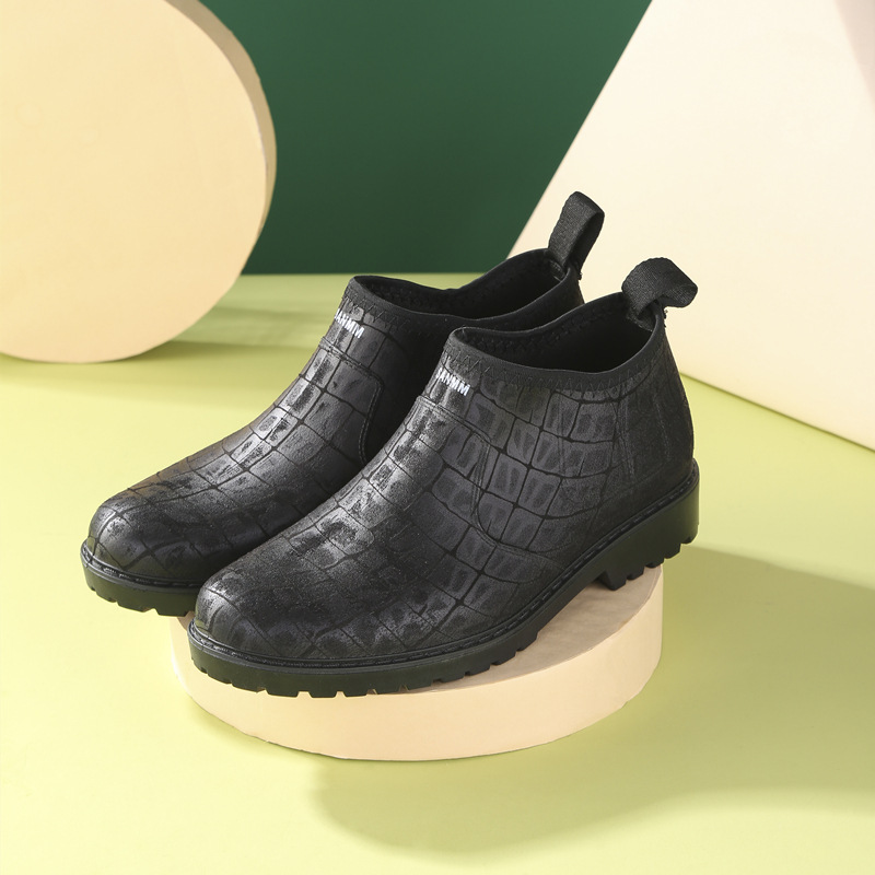 세련된 로우 탑 레인 부츠 남성용 미끄럼 방지 로우 탑 방수 신발 레인 부츠 장화 남성 세차 주방 고무 신발 국경스토어 가기