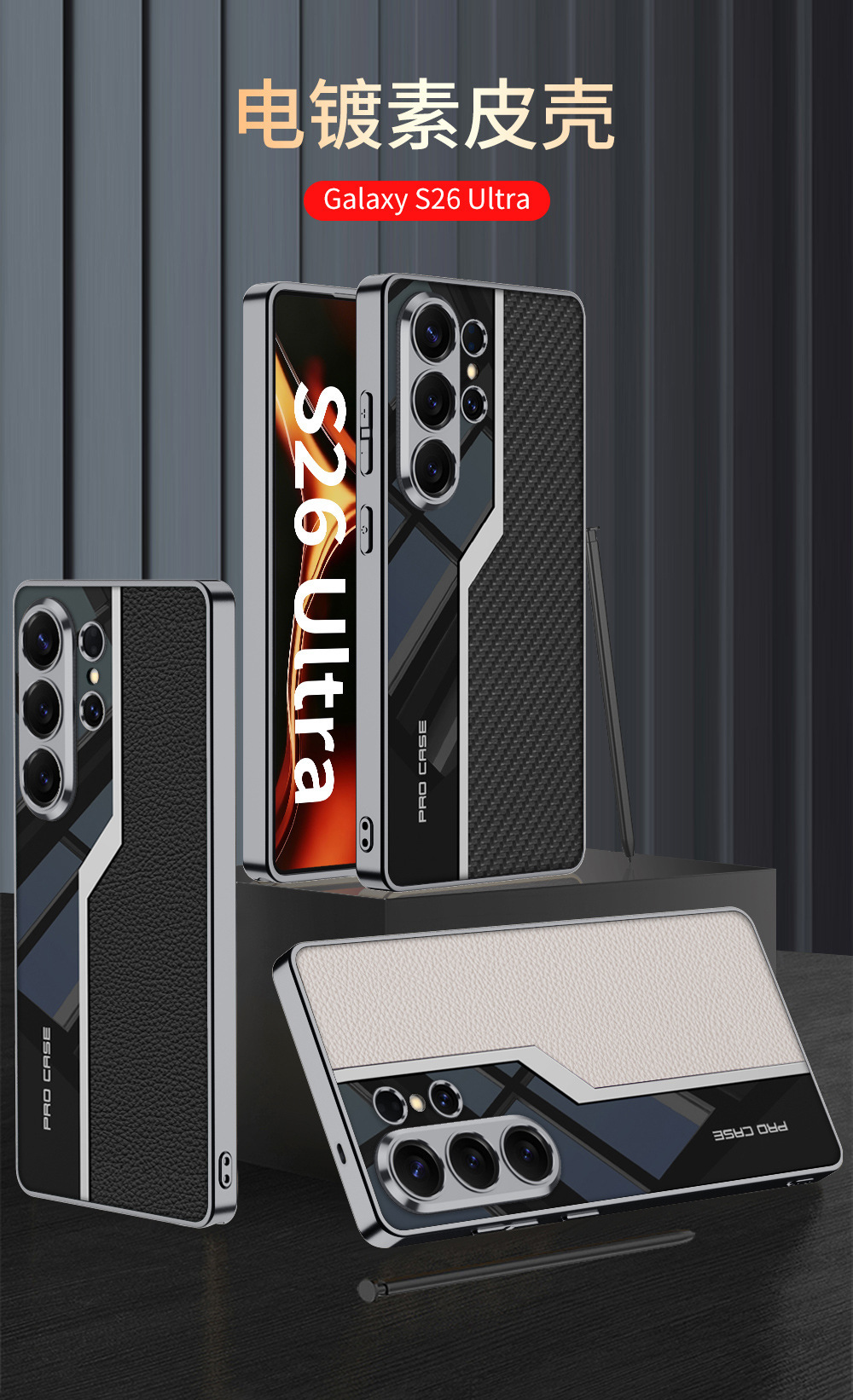 삼성 S26Ultra 휴대폰 케이스에 적합 S25/24Ultra 전기도금 가죽 S23U 풀커버 낙하 방지 보호 케이스