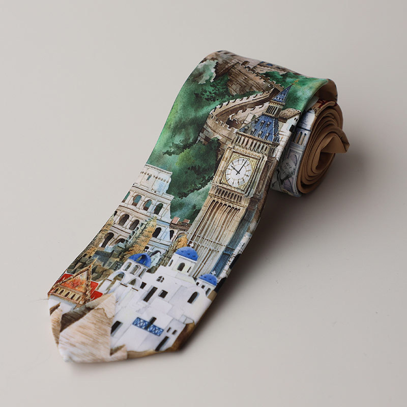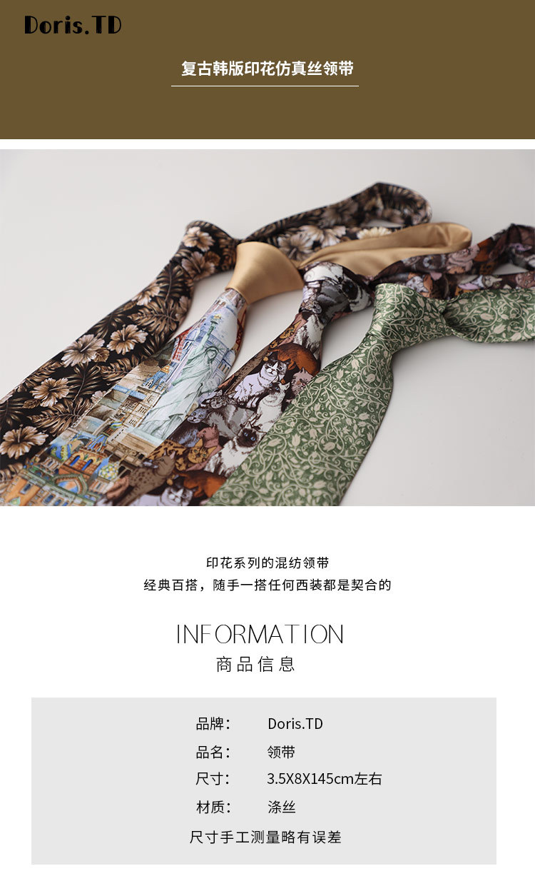 공장 명소 도매 캐주얼 패션 버전 복고풍 한국 인쇄 실크 넥타이 남성 홍콩 스타일 무대 공연스토어 가기
