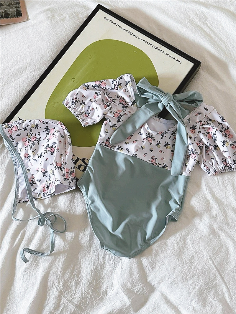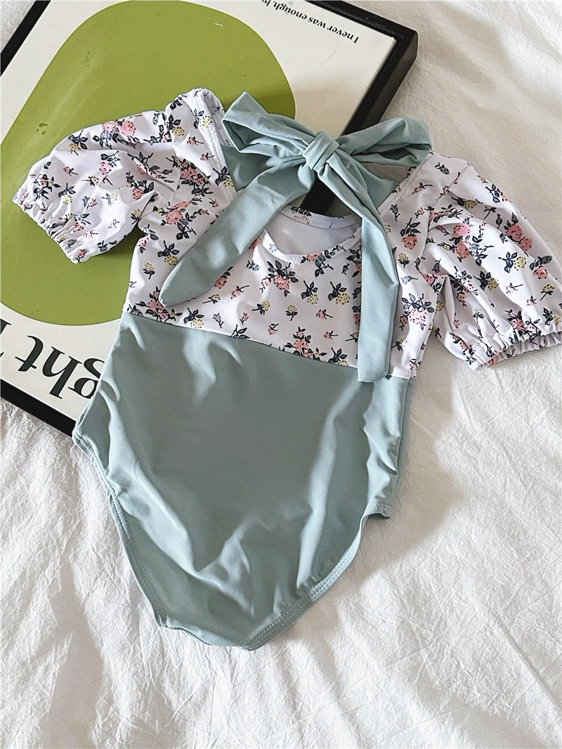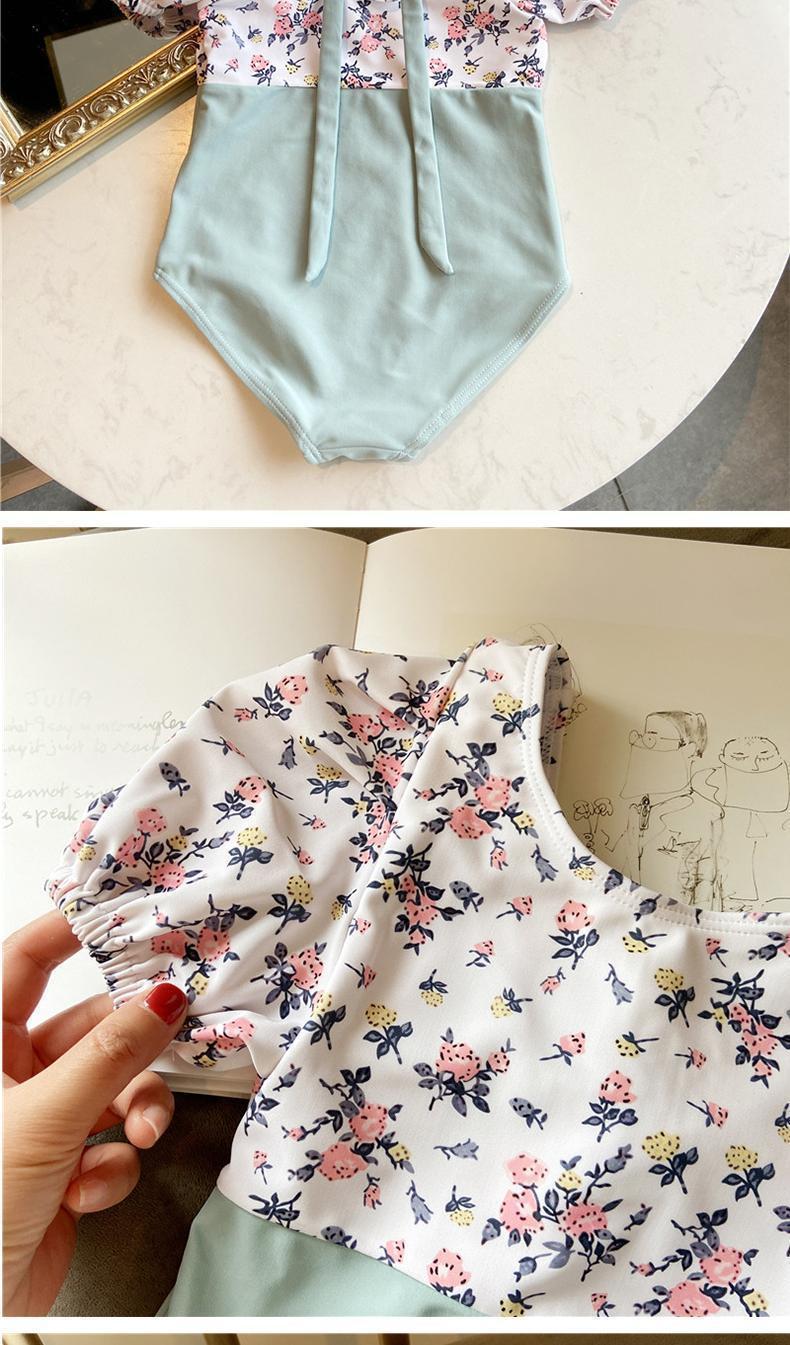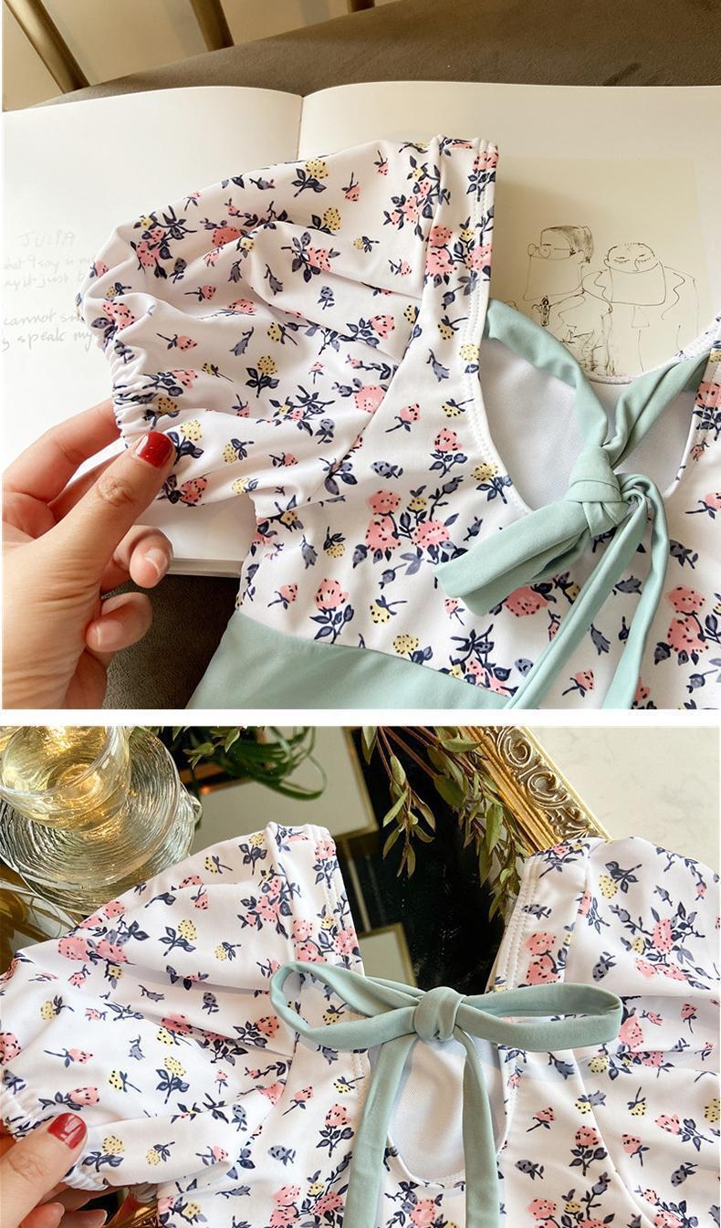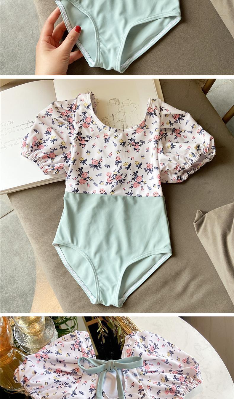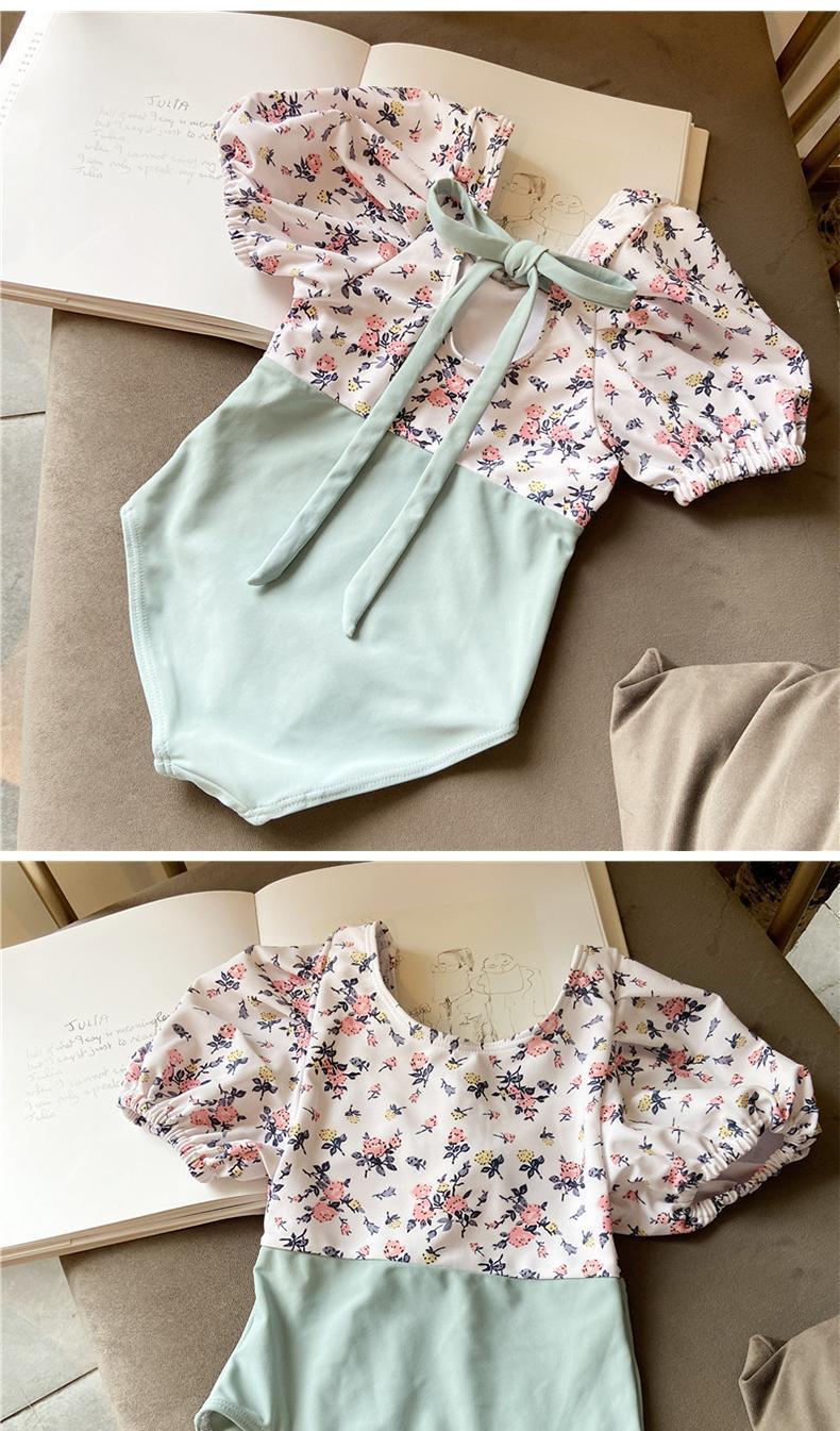 새로운 소녀 꽃 소녀 어린이 수영복 원피스 슈퍼 귀여운 활 수영복 공주 아기 퍼프 소매 서양식스토어 가기
