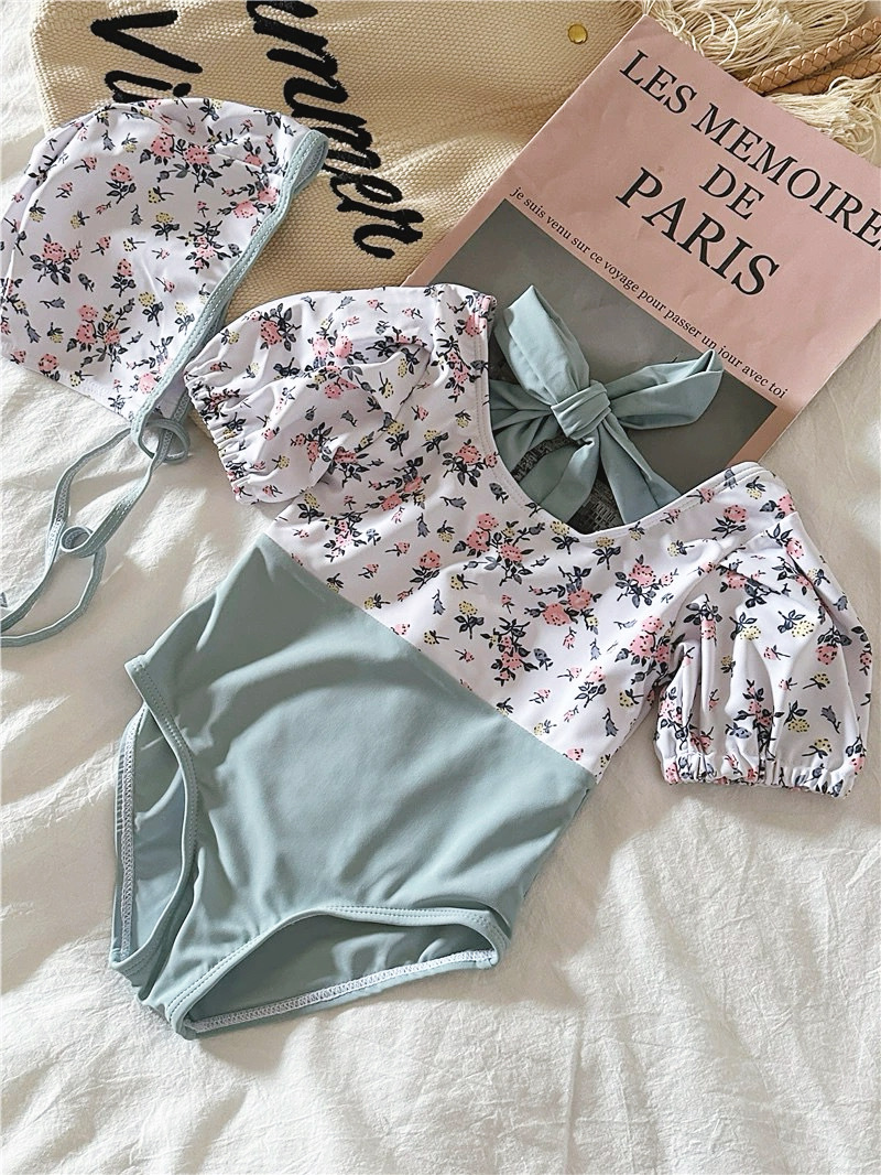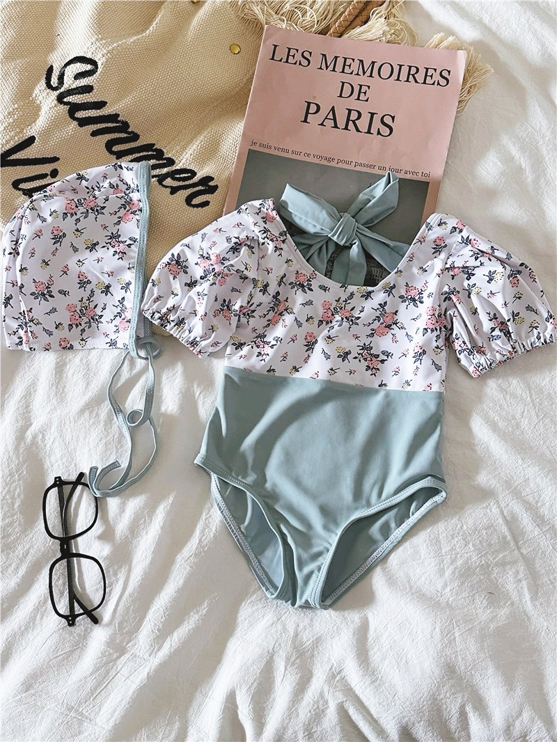 • [꽃 수영복 + 일치하는 꽃 수영 모자]]