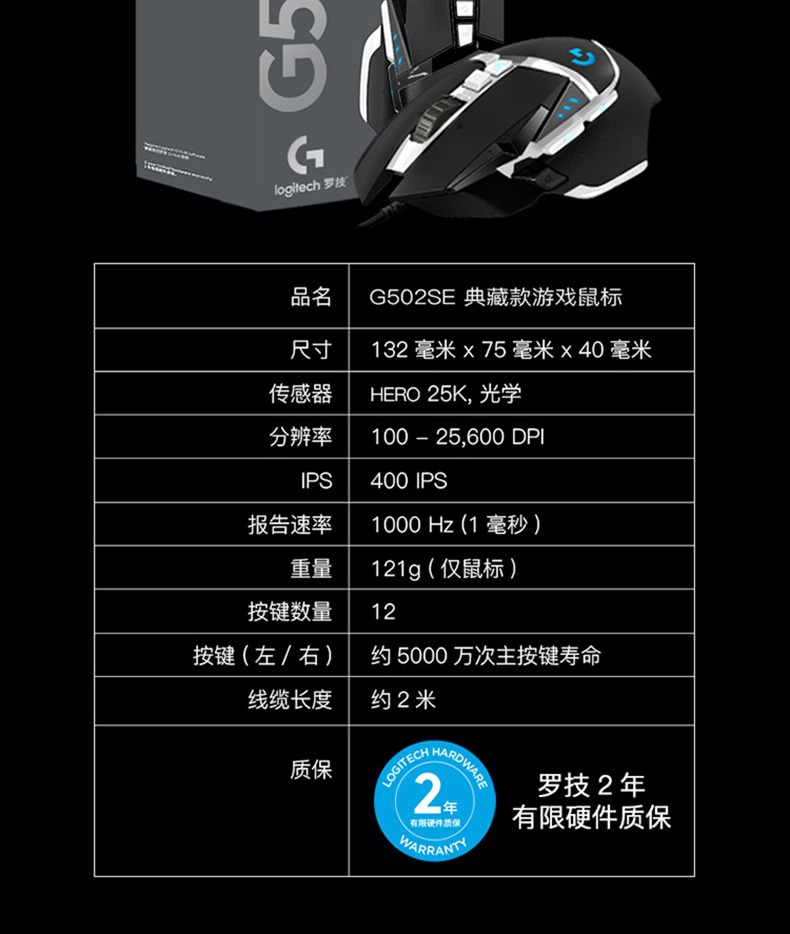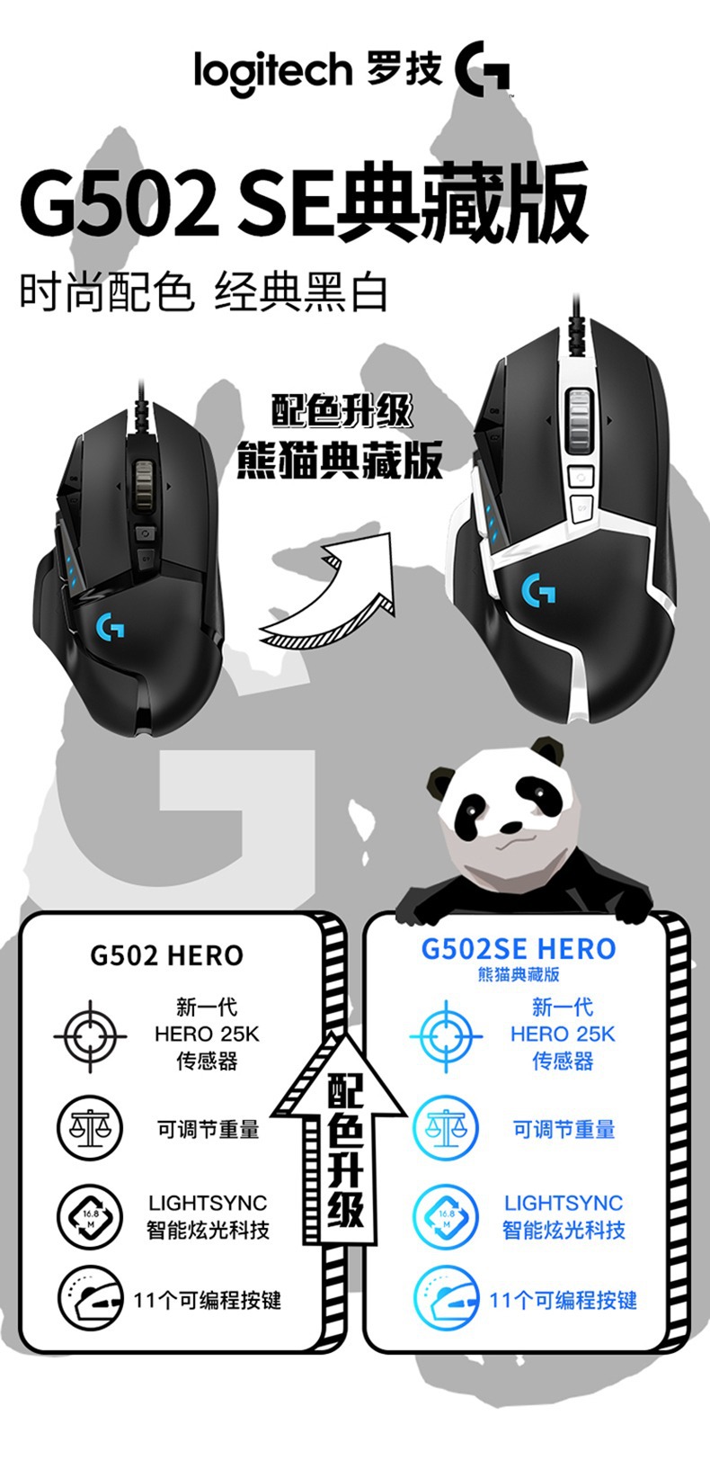 로지텍 로지텍 G502hero 유선 마우스 502SE 팬더 스포츠 게임 RGB 빛나는 기계 마우스