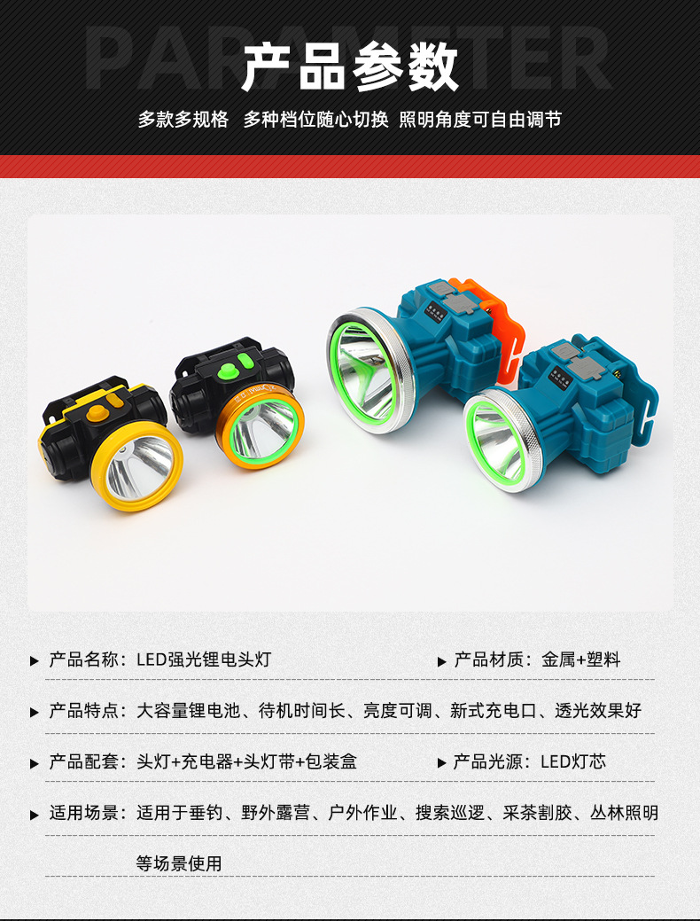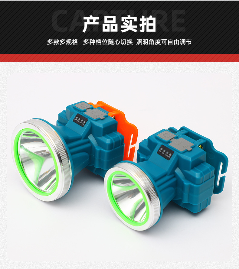 대외 무역 긴 수명 리튬 배터리 헤드 라이트 강한 빛 슈퍼 밝은 LED 필드 라이트 고출력 낚시 방수 조명
