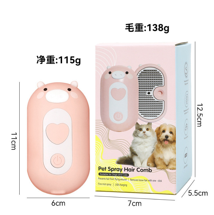 국경 간 전기 원 버튼 워시 프리 스프레이 브러시 청소 제모 빗 고양이와 개 비행 방지 헤어 충전 애완 동물 스프레이 마사지 빗