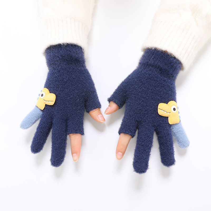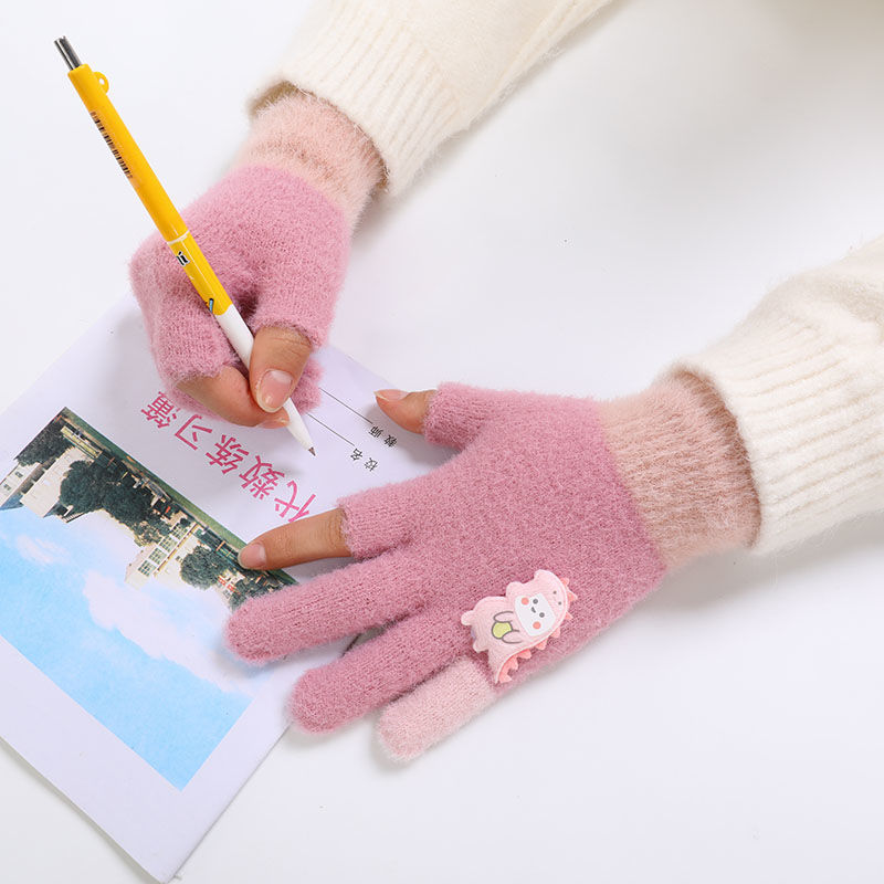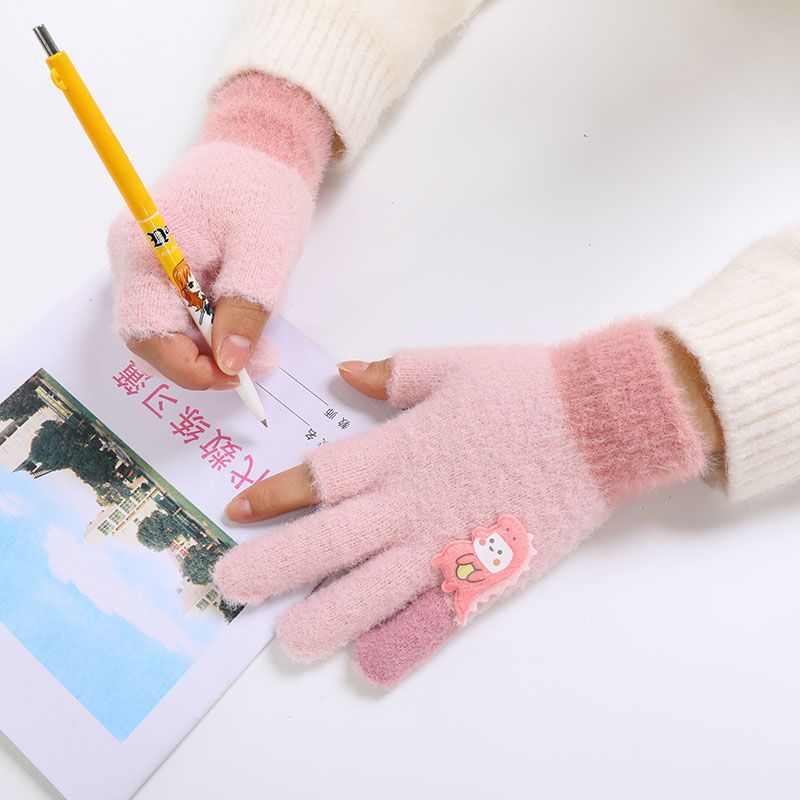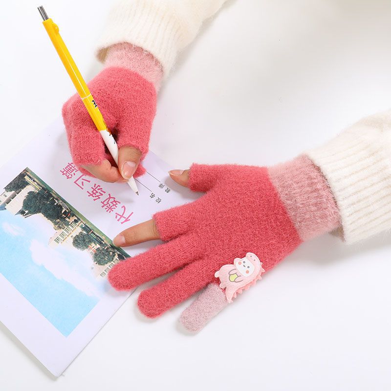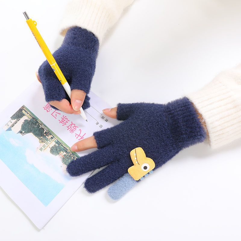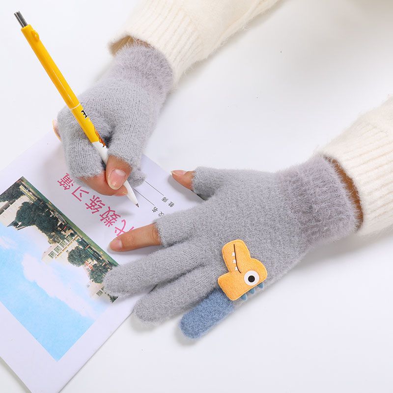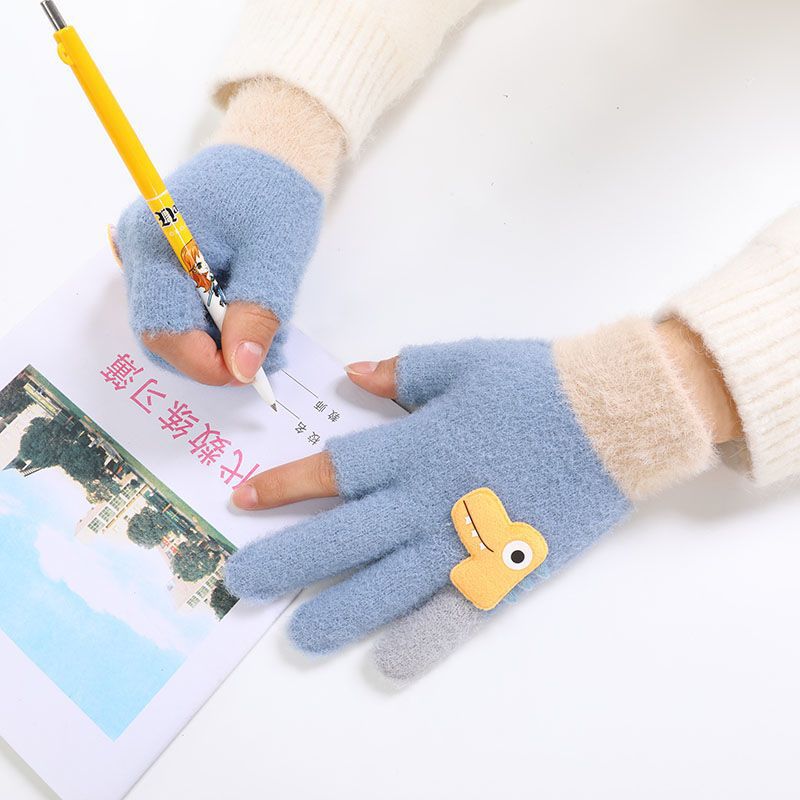 두 손가락 노출 어린이 장갑 가을과 겨울 귀여운 봉제 따뜻한 반 손가락 장갑 소년 소녀 초등학생 장갑 글쓰기스토어 가기