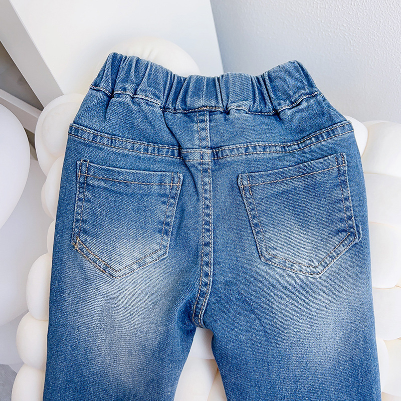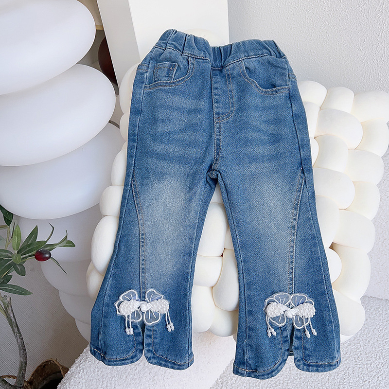 새로운 바지 소녀 달콤한 어린이 청바지 봄 어린 소녀 플레어 바지 유행 유행 캐주얼 청바지