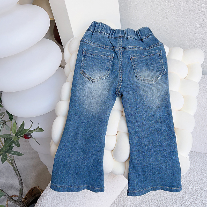 새로운 바지 소녀 달콤한 어린이 청바지 봄 어린 소녀 플레어 바지 유행 유행 캐주얼 청바지스토어 가기