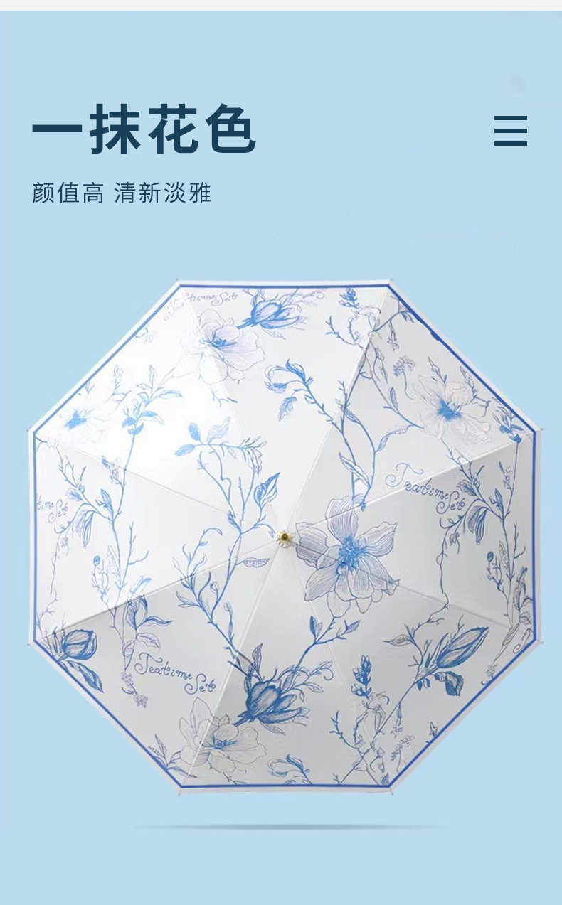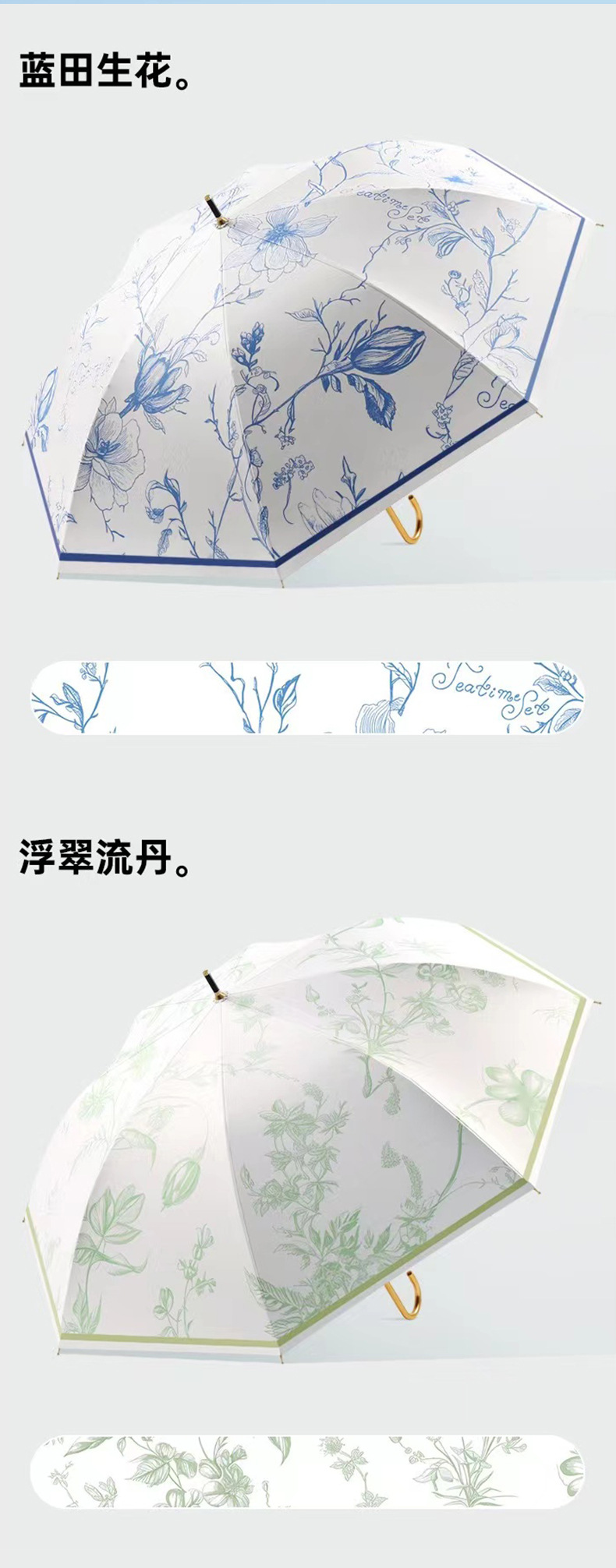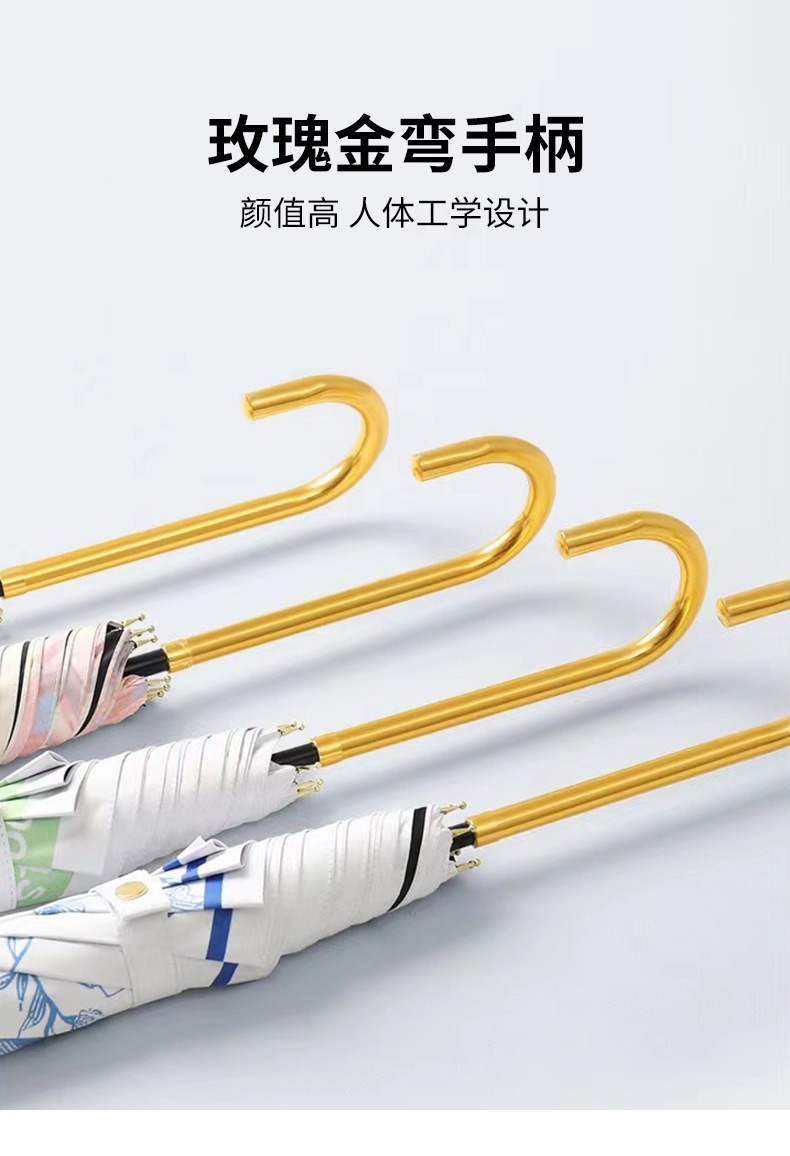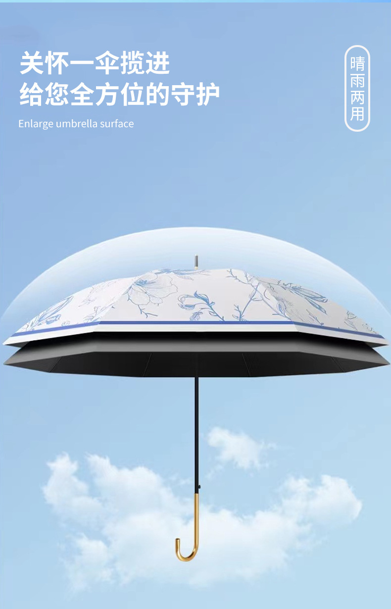 높은 색상 가치 작은 신선한 꽃 스트레이트 로드 우산 검은 고무 자외선 차단제와 비 이중 목적 고급 긴 손잡이 우산 여성의 강화 바람 저항