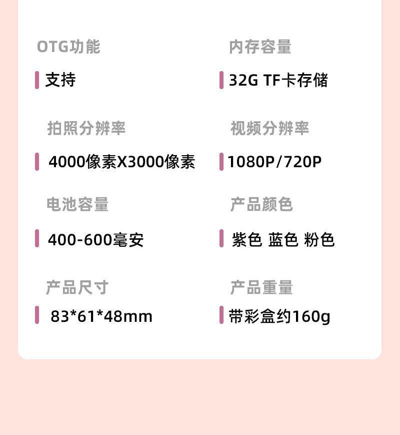 • 보라색 HD 듀얼 카메라 (32g 카드 + 카드 리더)