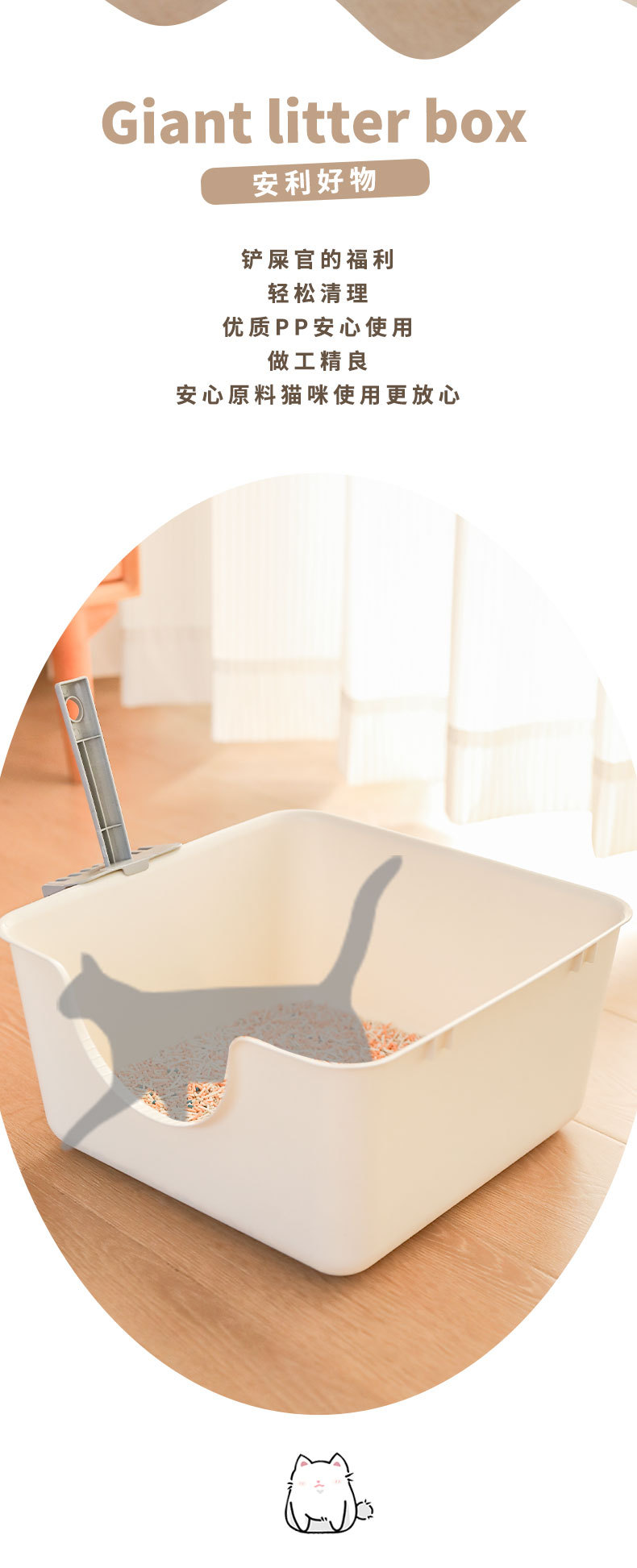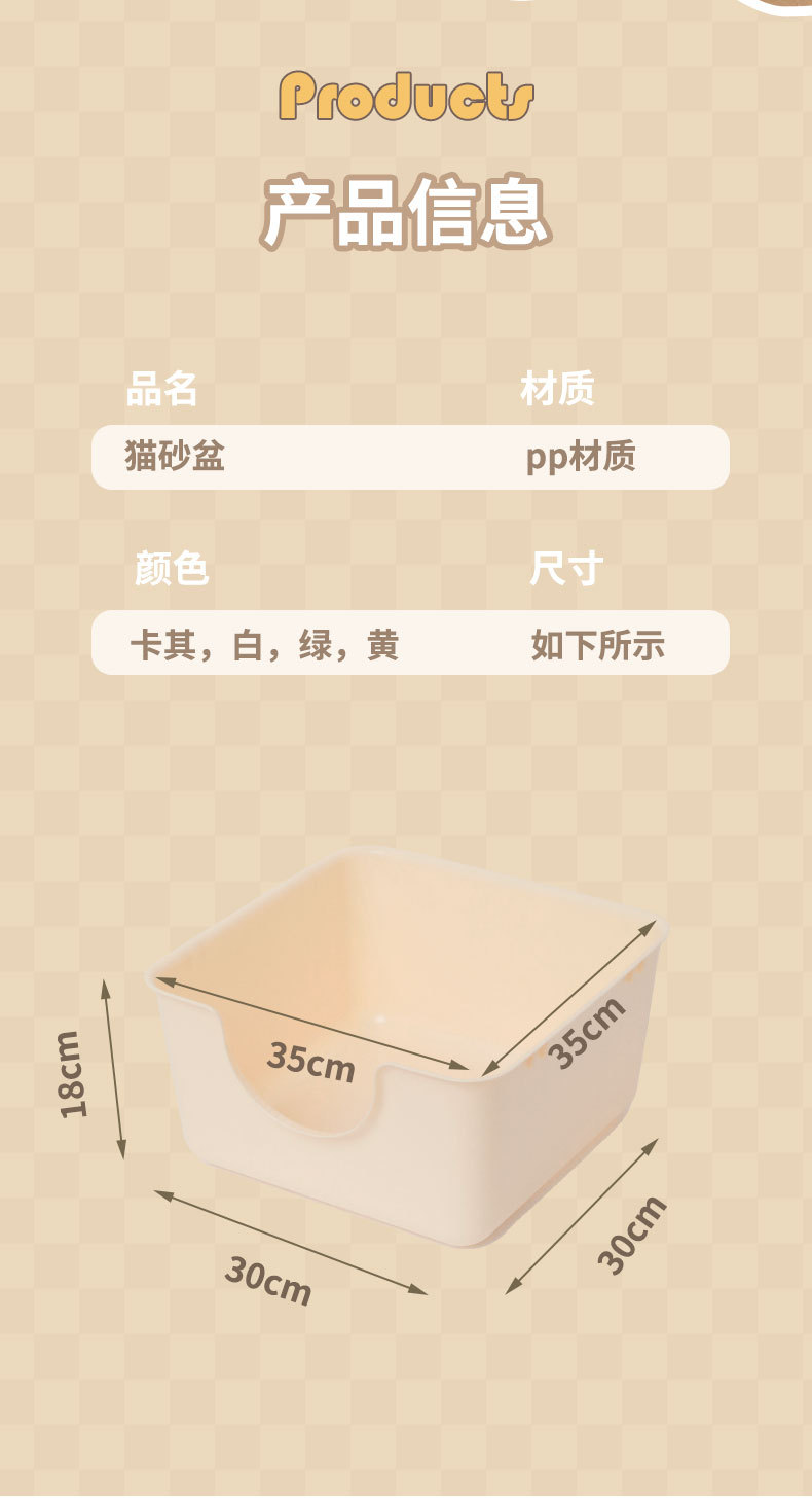 -产品名称: 一体式方形猫砂盆