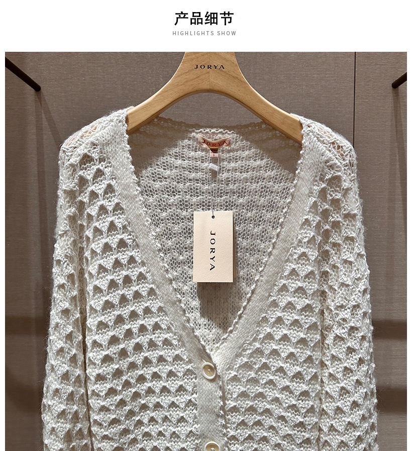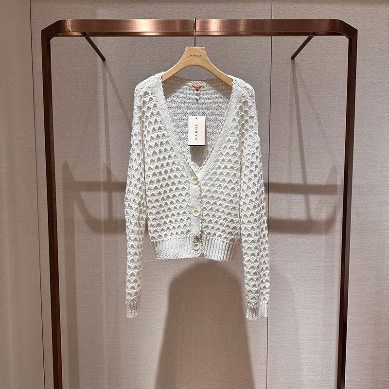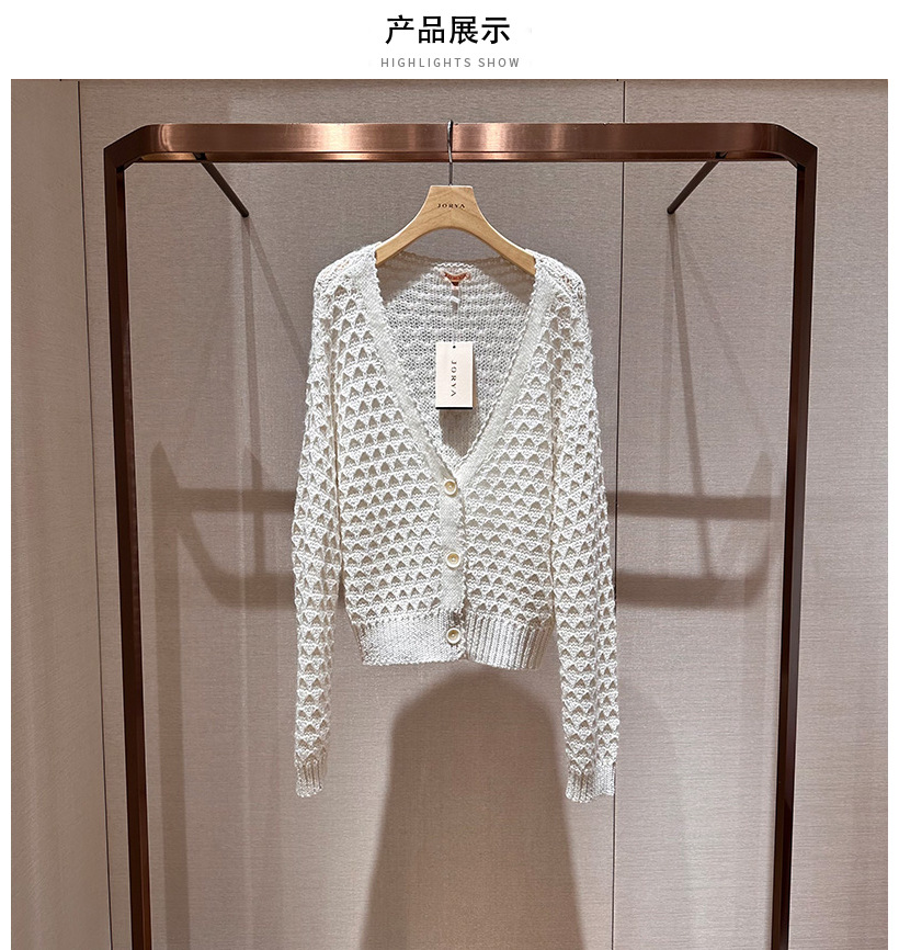 2024 봄 새로운 디자인 감각 틈새 V 넥 중공 니트 카디건 코트 여성용 Q107307E스토어 가기